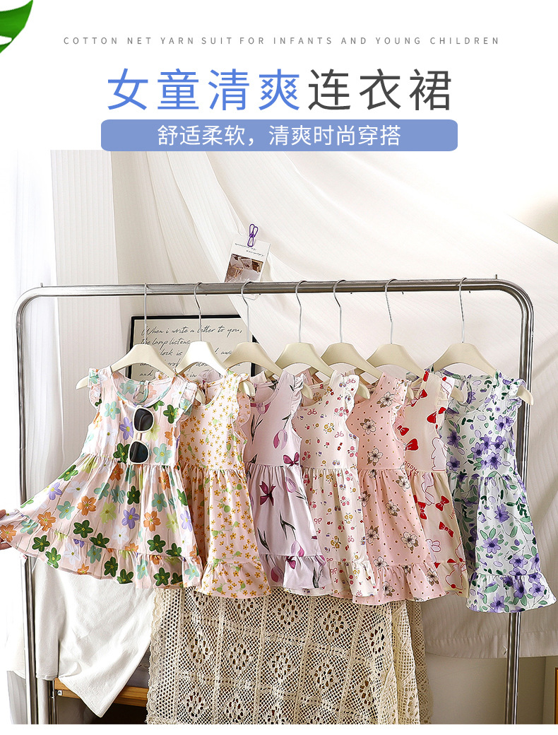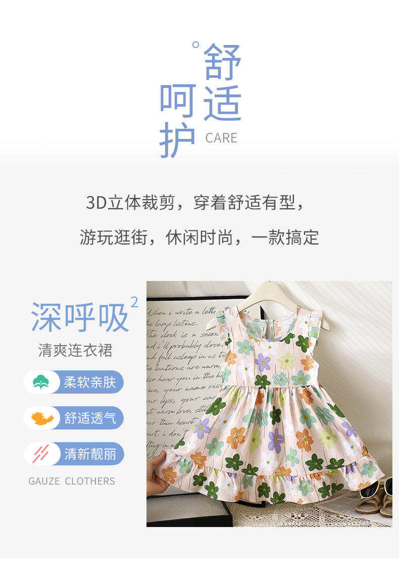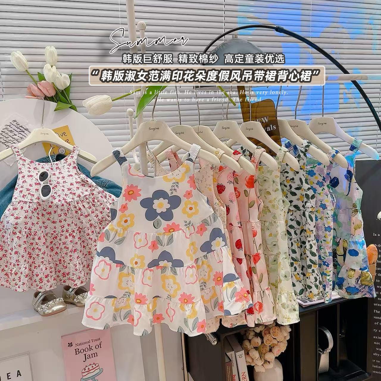 【49.9元3条】夏季薄款儿童棉绸连衣裙 女童碎花吊带连衣裙