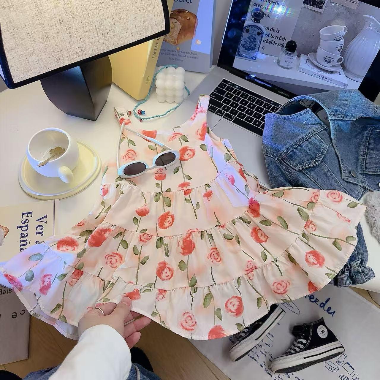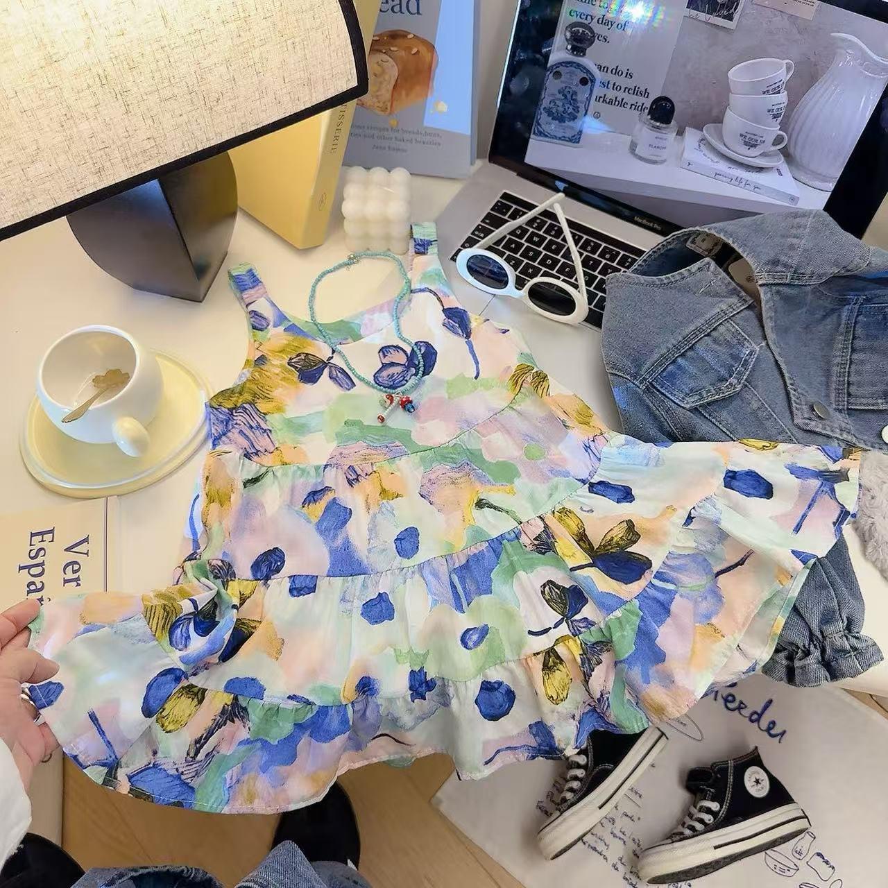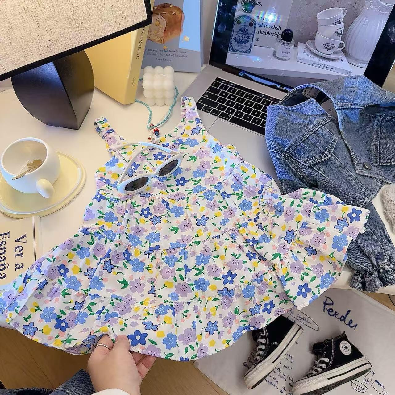 【49.9元3条】夏季薄款儿童棉绸连衣裙 女童碎花吊带连衣裙