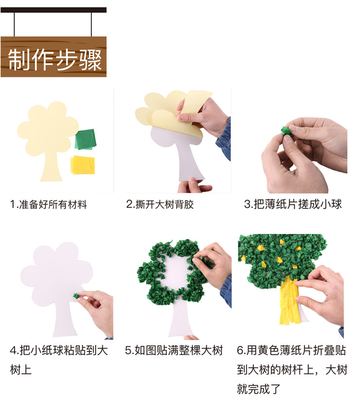搓纸大树手工DIY材料包 幼儿春季手工爱护树木主题搓纸创意手工