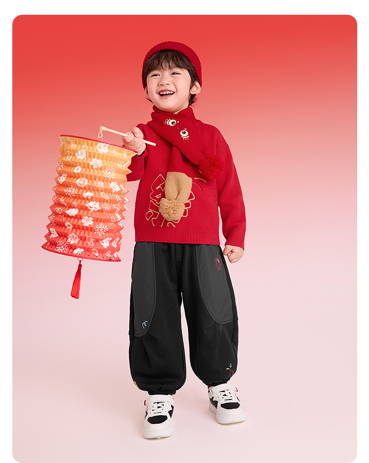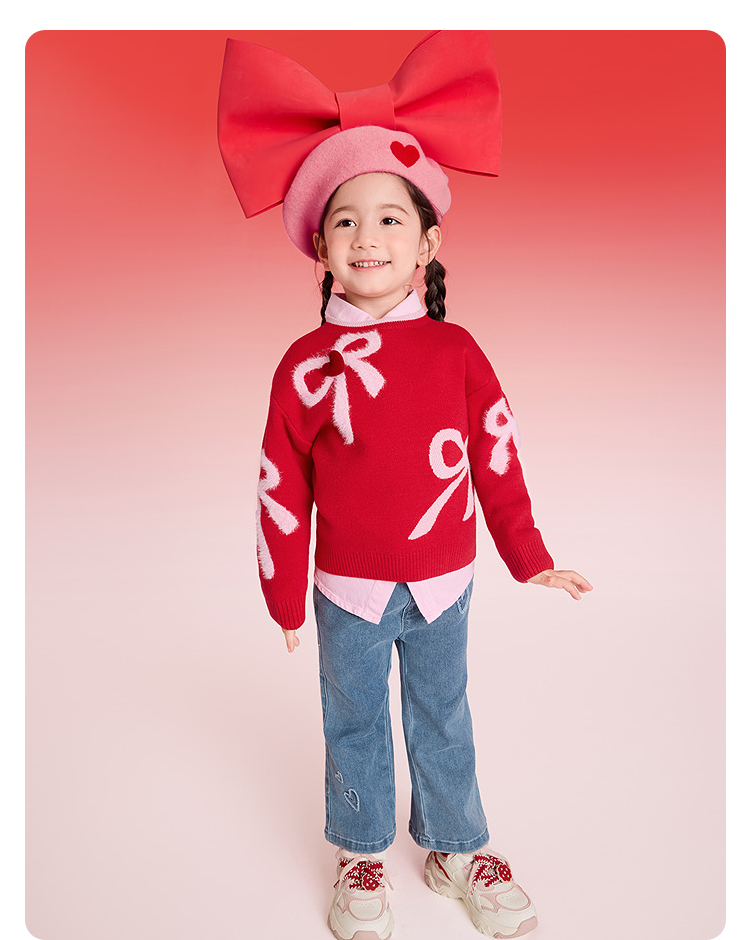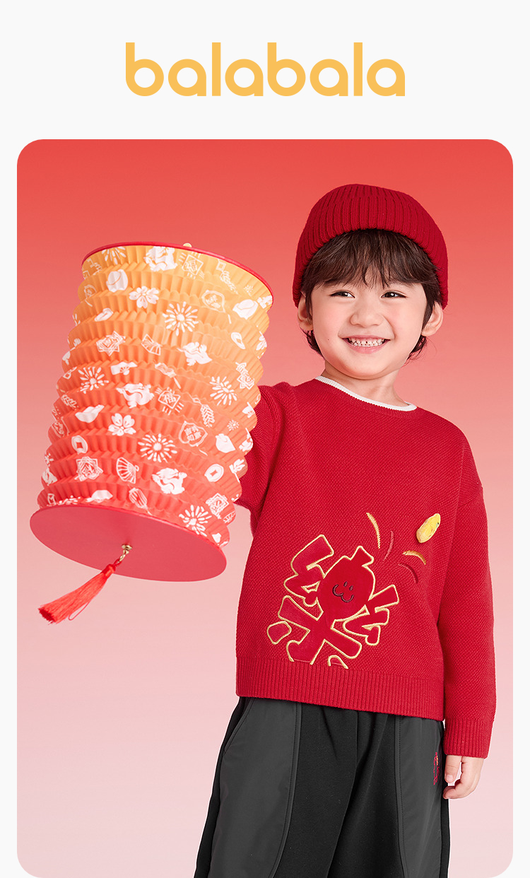 【balaOne】巴拉巴拉童装儿童毛衫新年红色针织衫2025新款春装潮