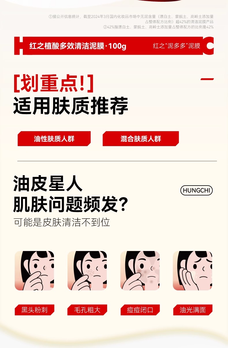 红之植酸多效清洁泥膜 100g/支
