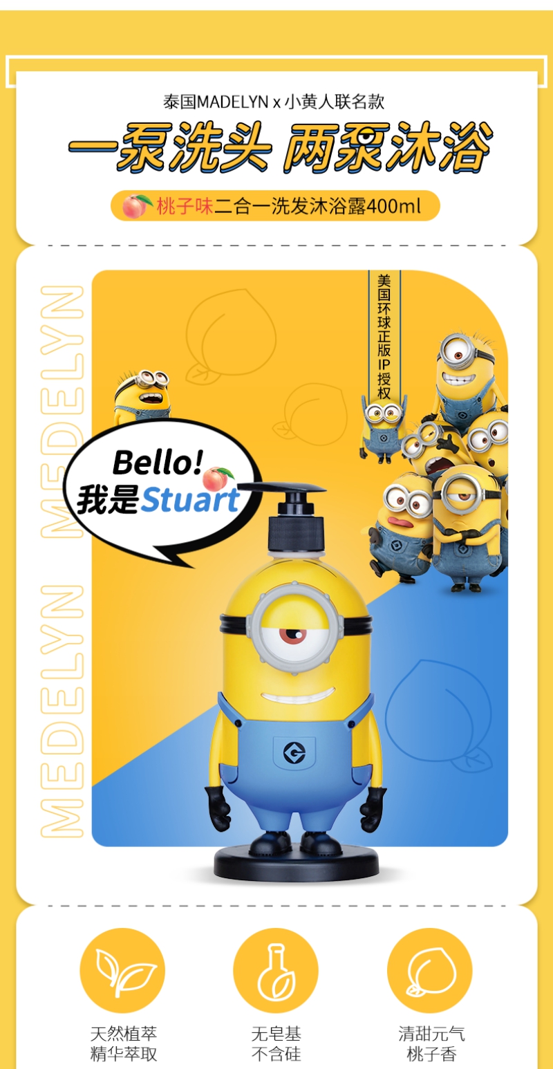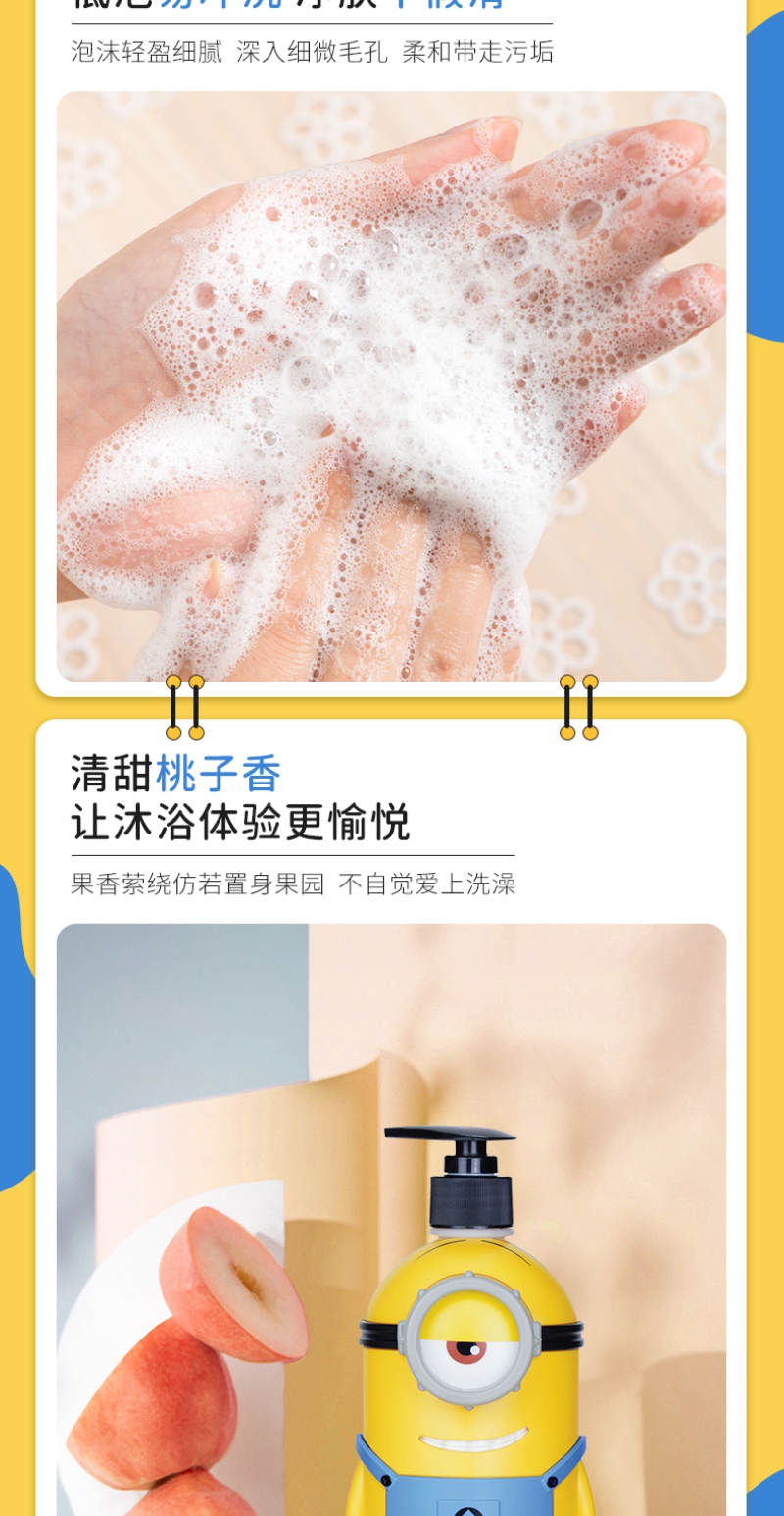 【YZ】小黄人儿童洗发沐浴露二合一桃子味柔顺洗发乳