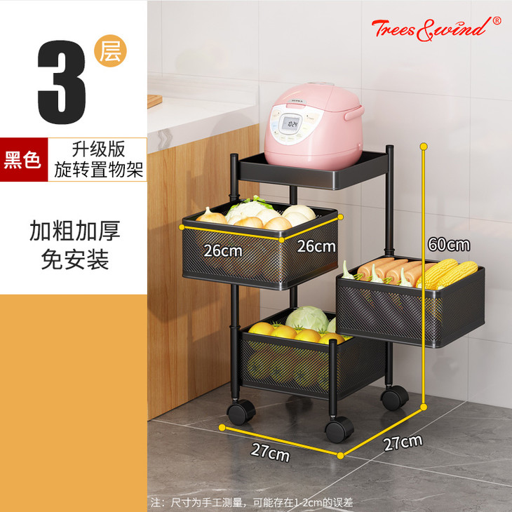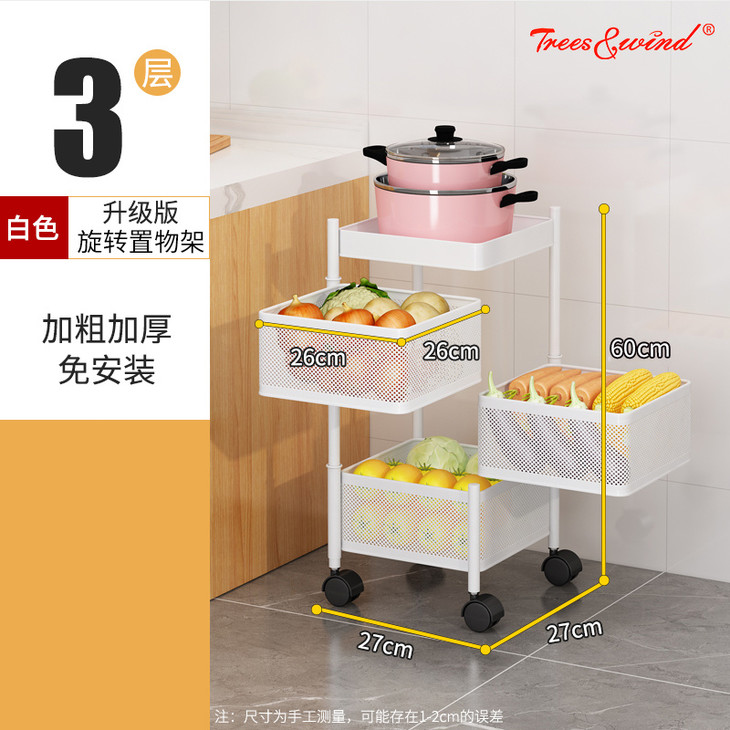 【方形旋转置物架】居家必不可少! 免安装✔多层收纳✔物品分类✔ 节约空间,360°滑轮移动,厨房。浴室、书房、卧室皆可用! 颜值超高又实用💯节约空间,蔬菜、水果、零是一个收纳架轻松搞定!不占位置
