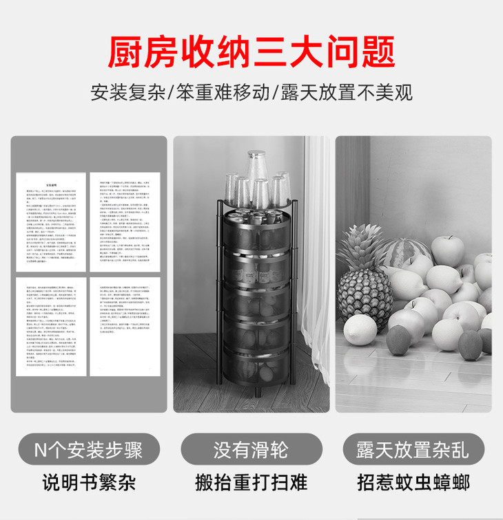 ✔升级实心顶盖围栏,小物件不易掉落,颜值超高!! ✔多层收纳,一定要买!家里有它太方便了!成功种草这款收纳架! 颜值超高又实用💯节约空间,蔬菜、水果、零食一个收纳架轻松搞定❗ ✔不占位置纯色的黑白烤漆,简约大气!!