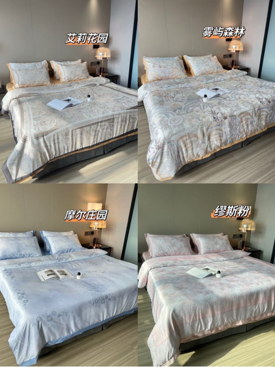 2️⃣雾屿森林 我滴妈❗️❗️真的好高级啊!满满的轻奢质感❗️ 清新淡雅的同时还可以做到如此奢华大气,罗家品牌定制的东西绝对绝对是超高级的货✊🏻✊🏻 也只有这种高端定制才可以做到!!! ✅高端简约大气 ✅柔软丝滑 ✅凉爽亲肤