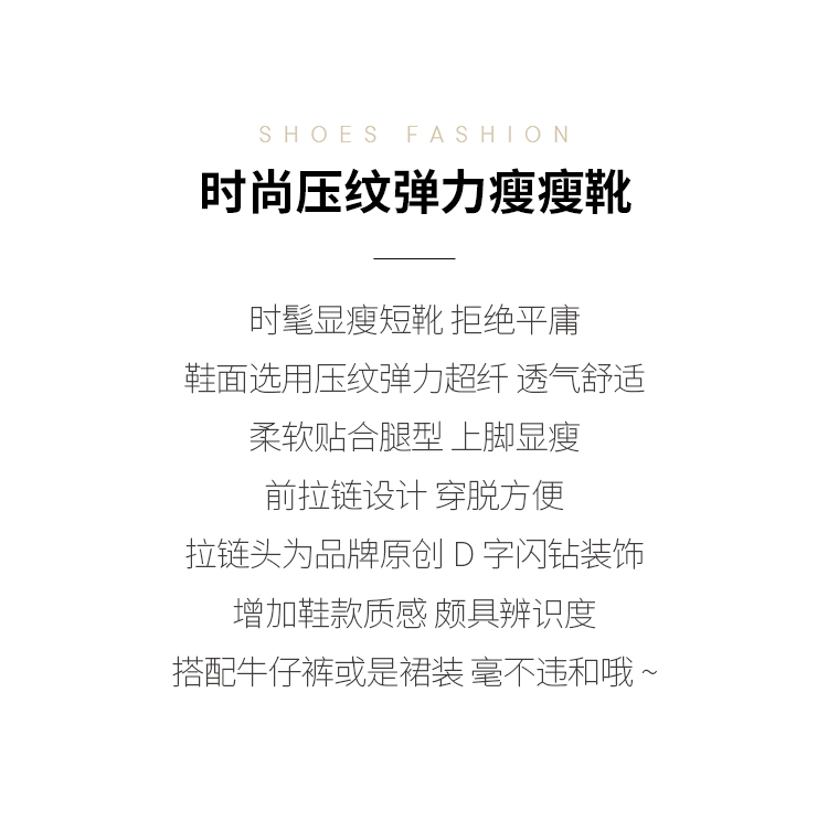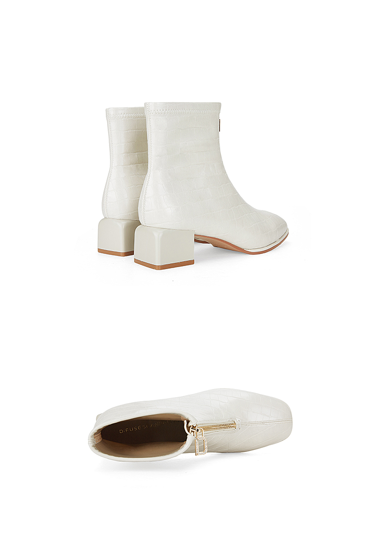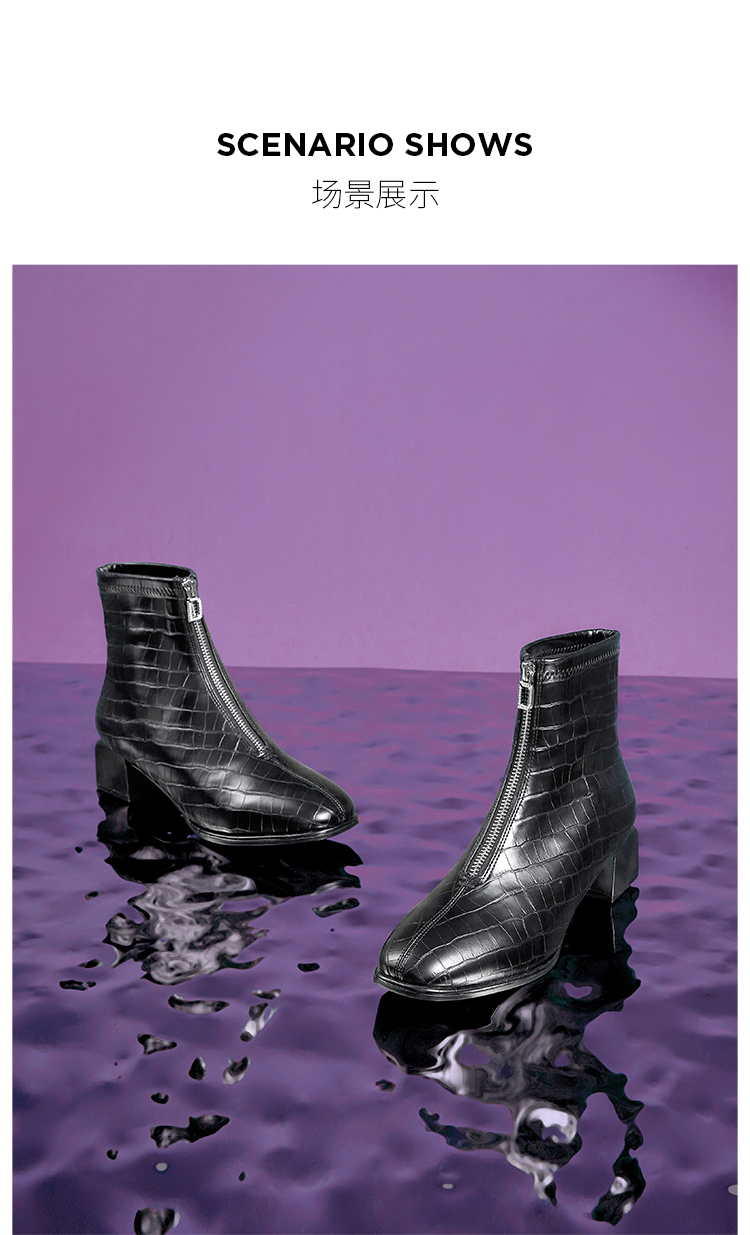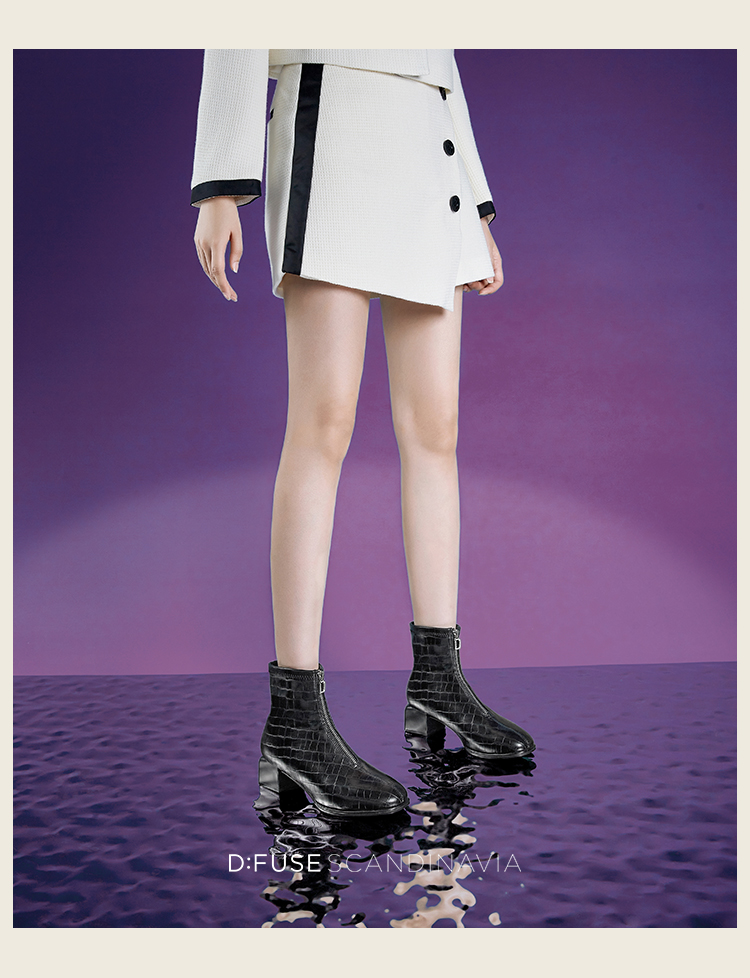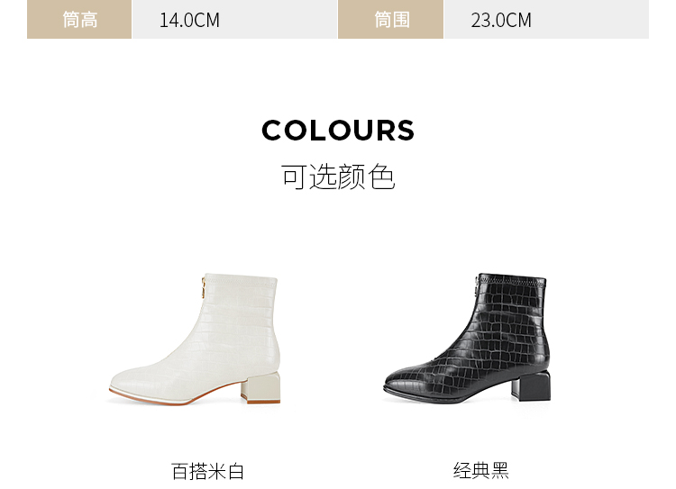 Dfuse迪芙斯冬新款时尚方头压纹前拉链粗跟瘦瘦靴短靴DF34116113