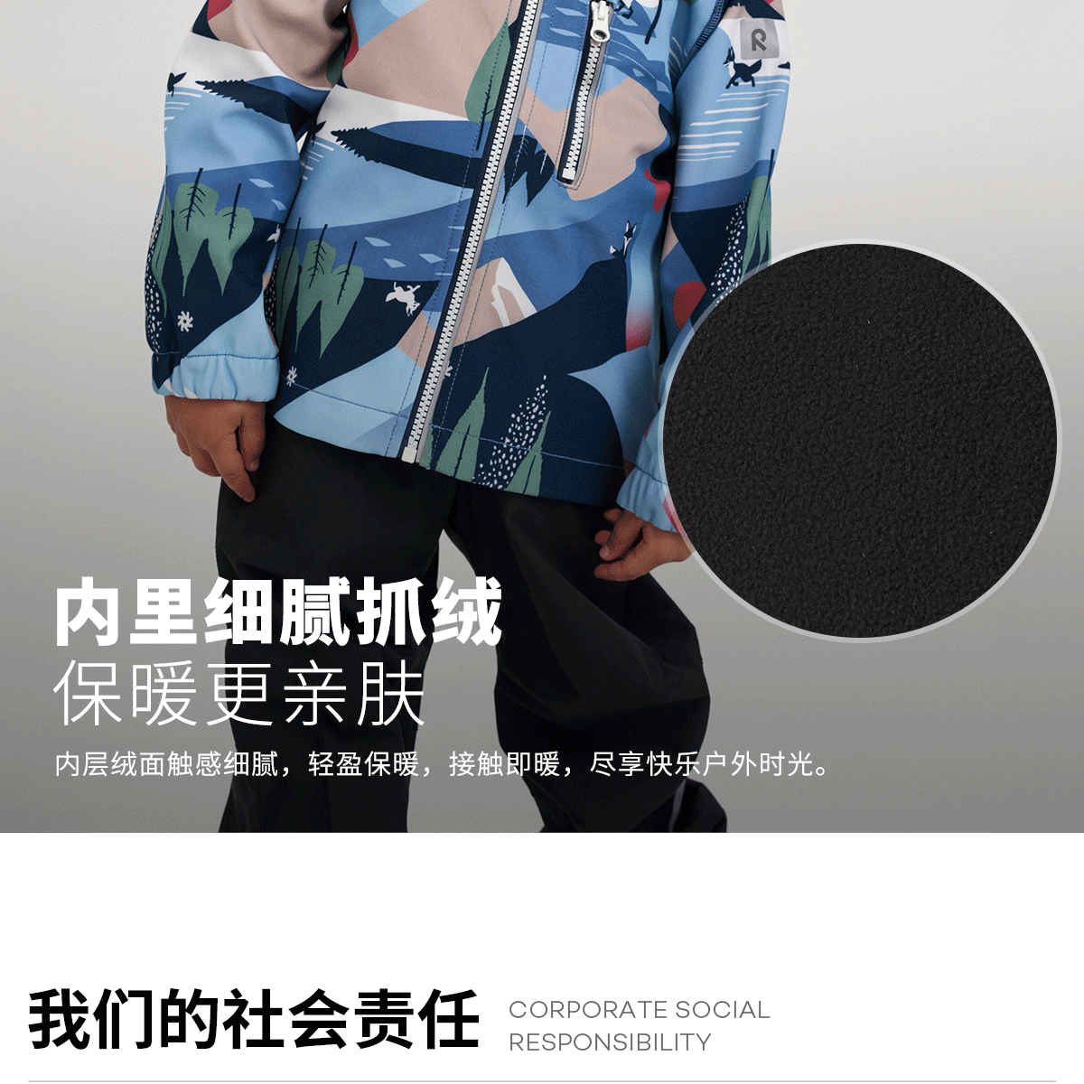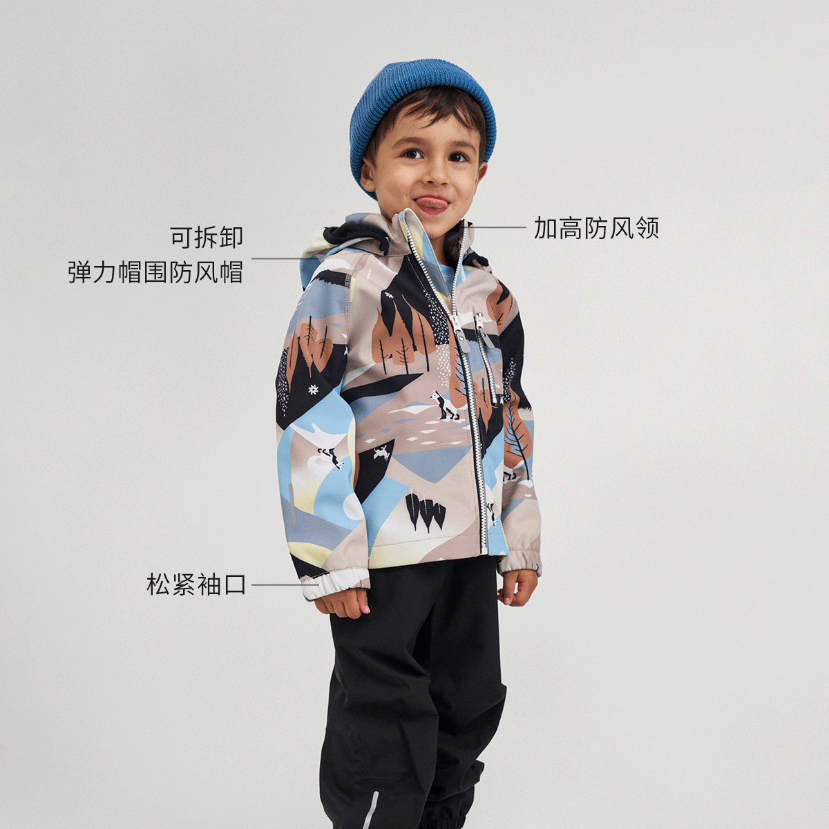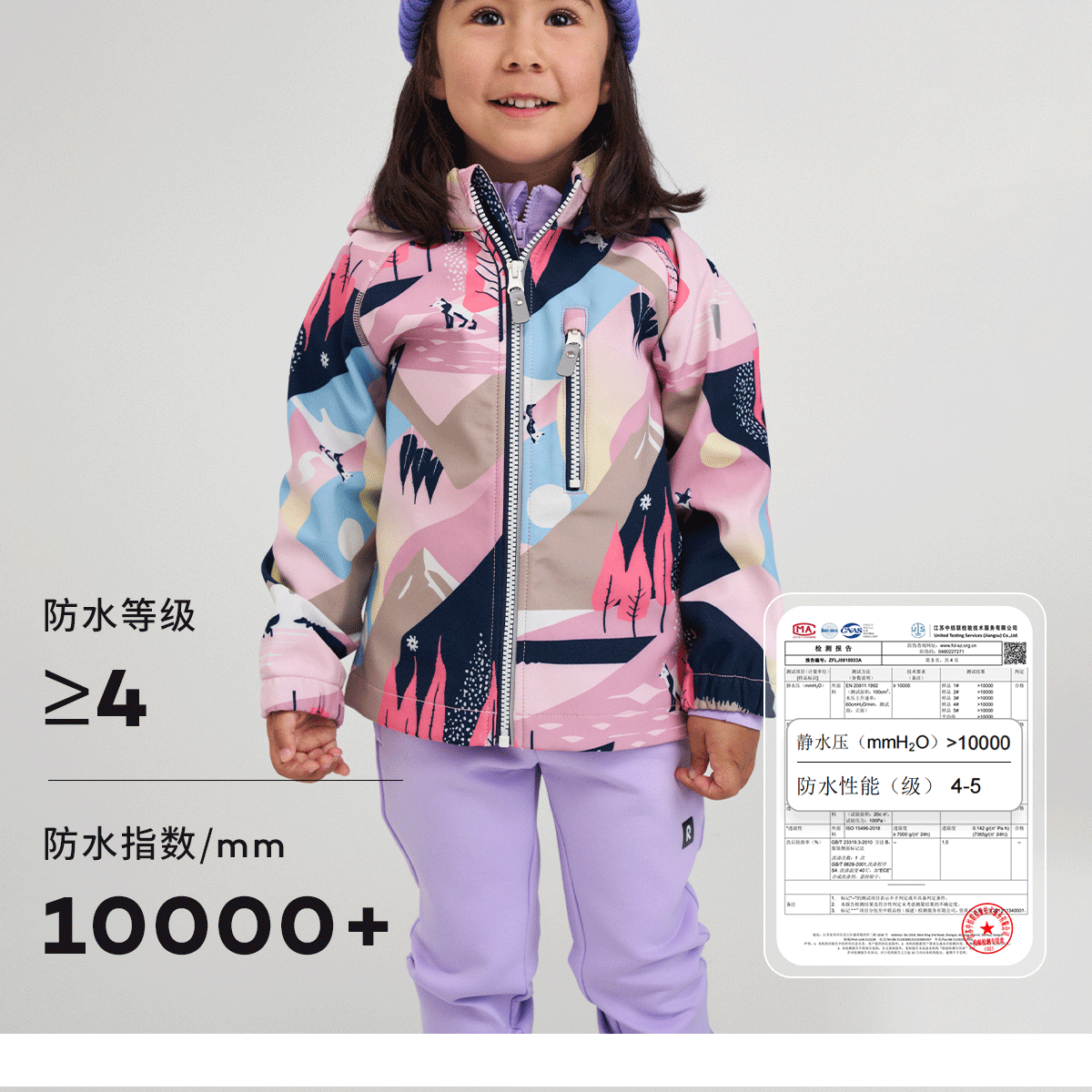 芬兰reima2025男女儿童中童拒风保暖拒水舒适印花运动软壳夹克
