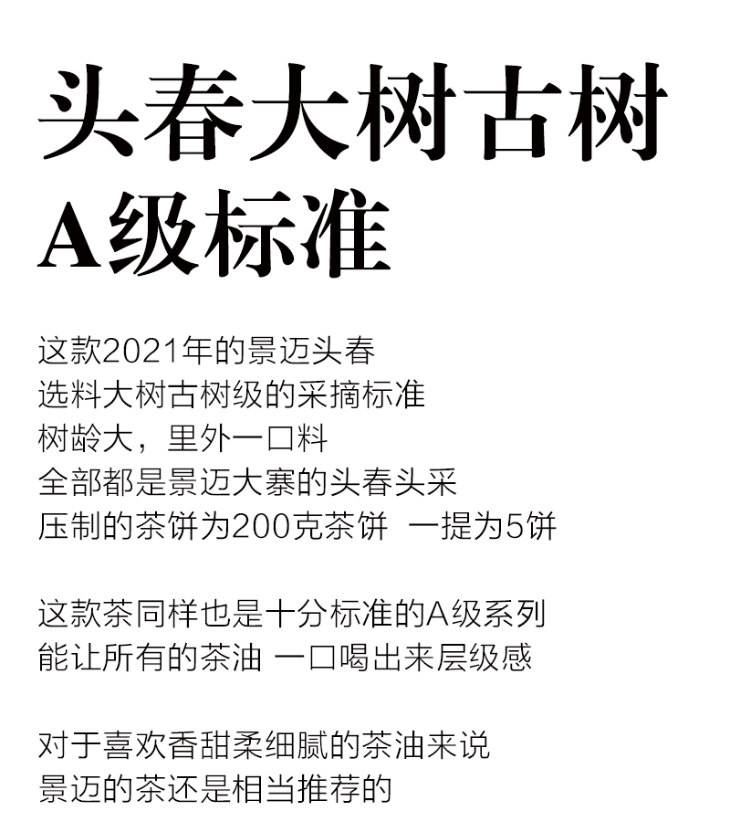 古树单采A级︱2019年头春纯料景迈普洱生茶200克