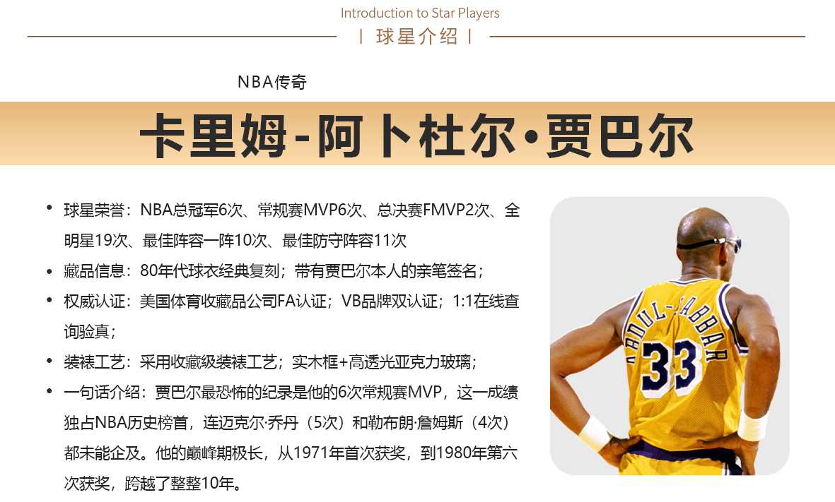 收藏系列 贾巴尔 湖人队33号黄色 亲笔签名球衣(仅支持小程序下单 约45天到货)