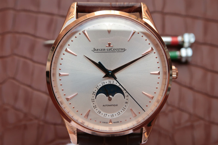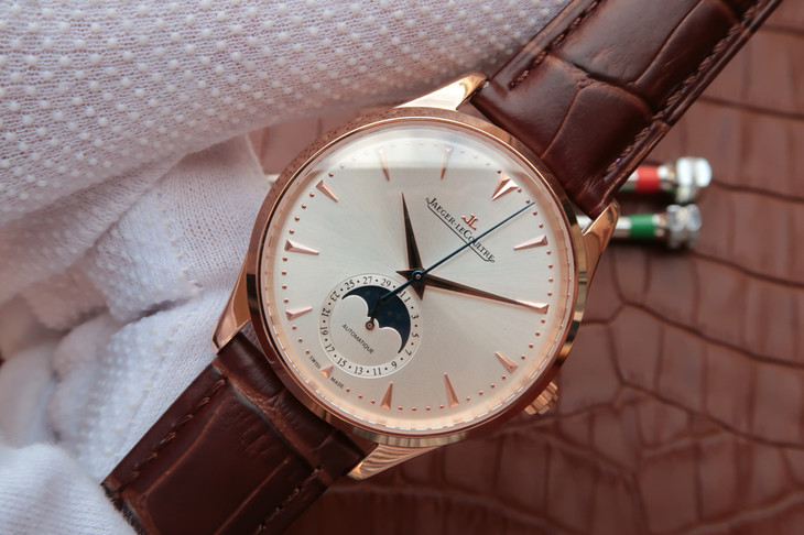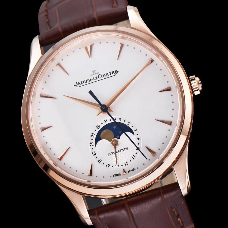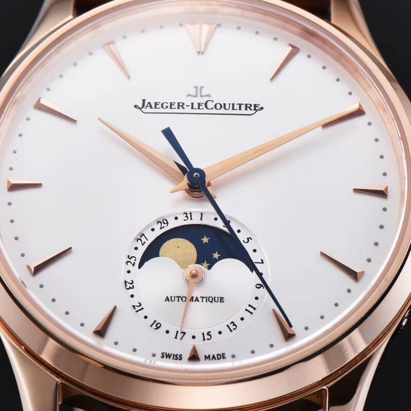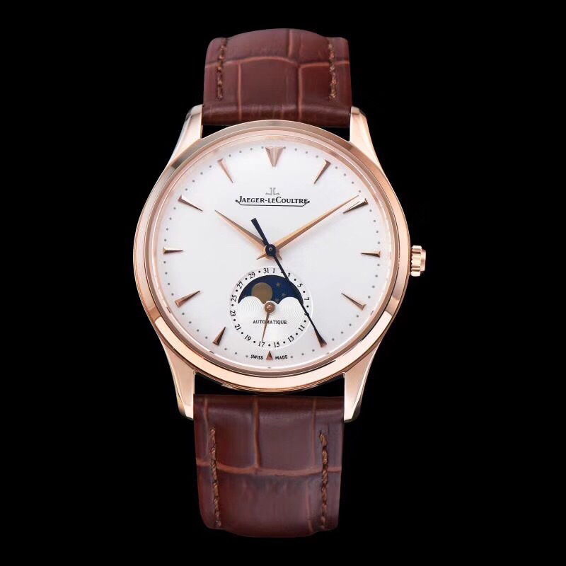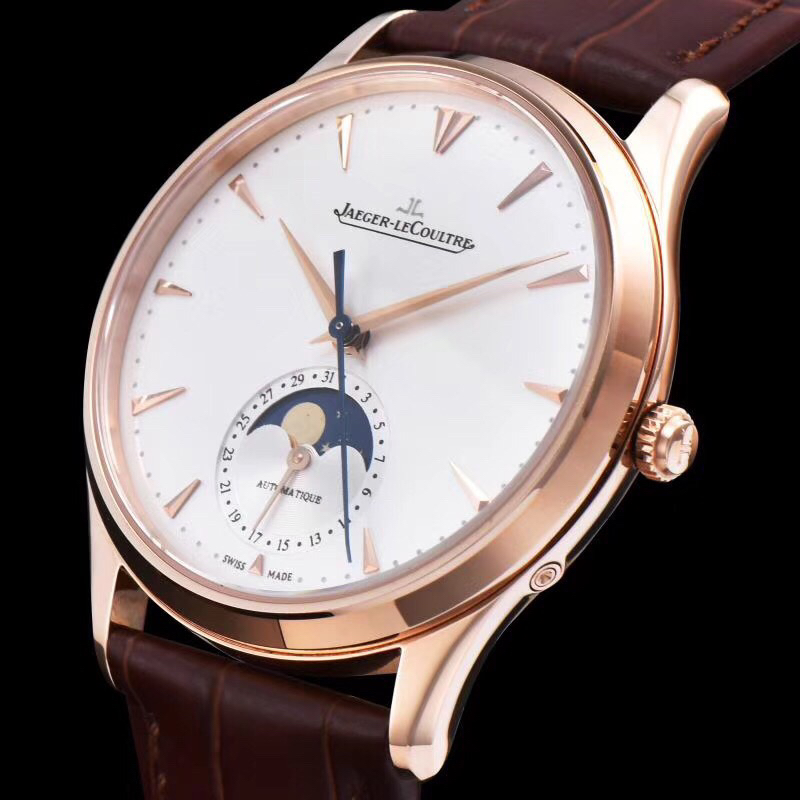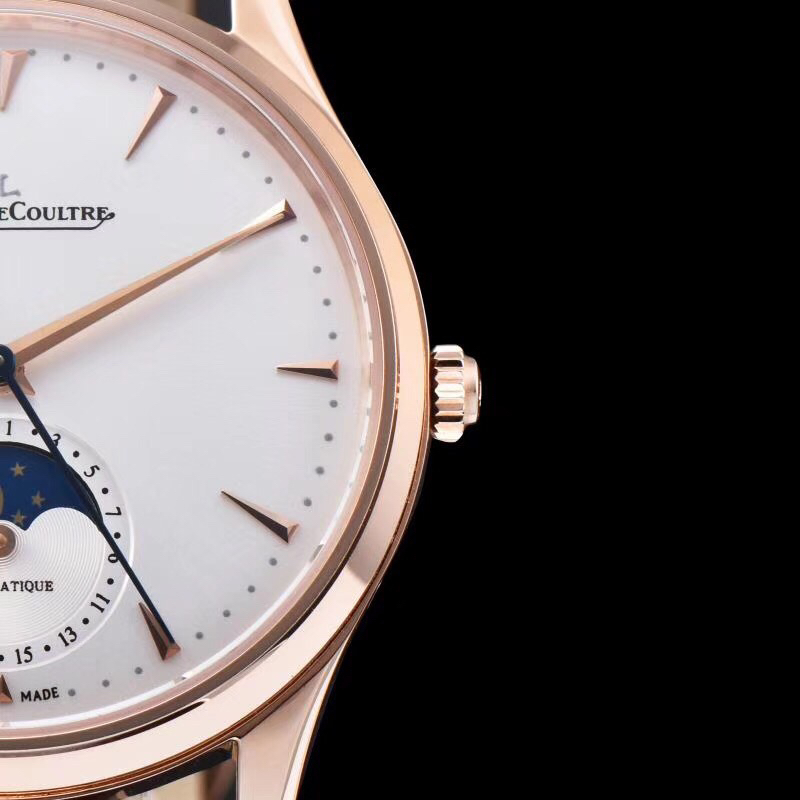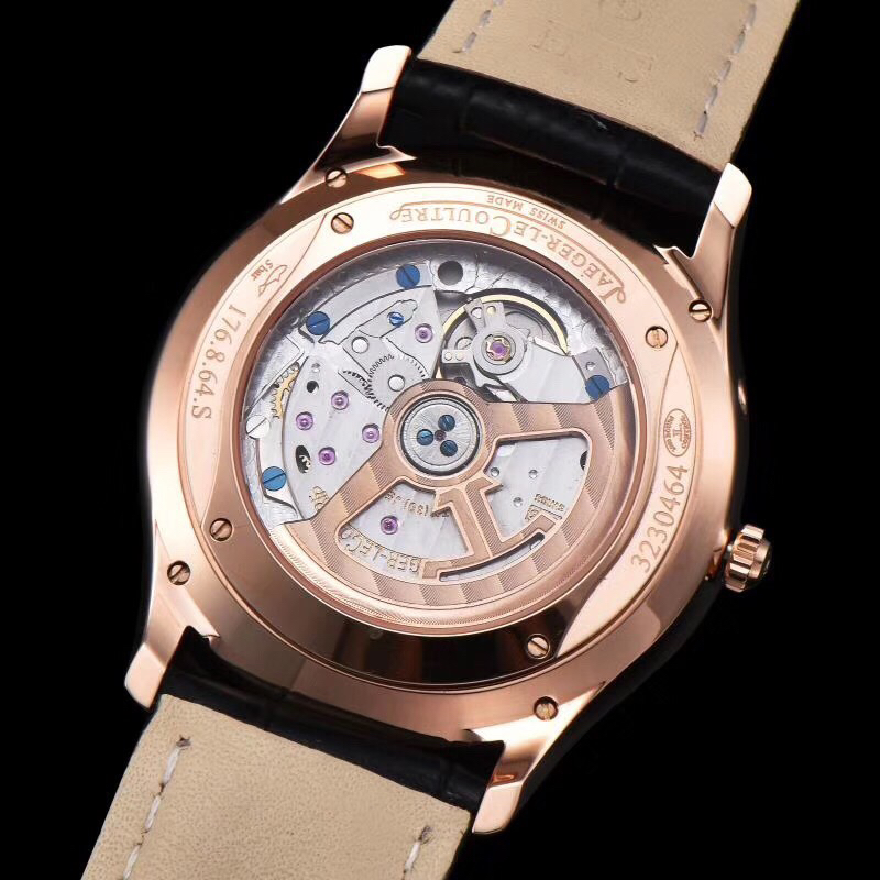 W0081N2600。乱真版积家chao薄大师玫瑰金到货。目前市面weiyi做到日历和月相所有功能和原装机芯一致 机芯采用稳定性chao强的9015改装复刻原版Cal.925全自动机芯 ,直径39毫米,精细的打磨和做工 让你不能不为之心动!!