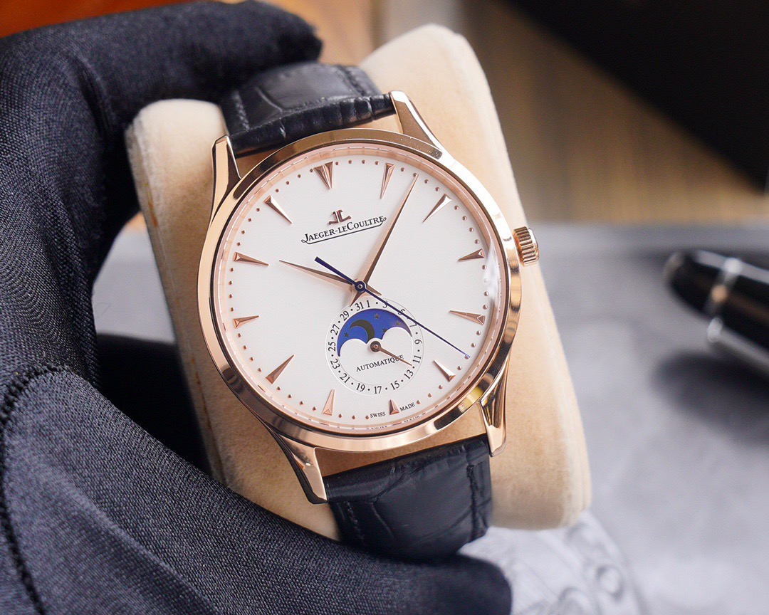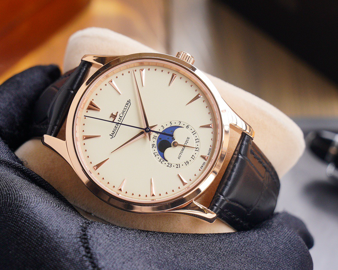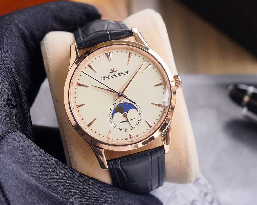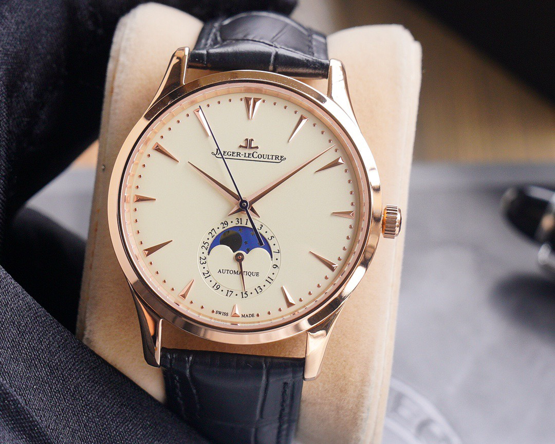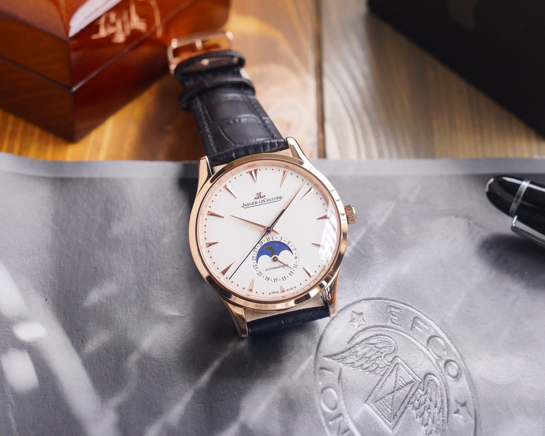 W0081N2600。乱真版积家chao薄大师玫瑰金到货。目前市面weiyi做到日历和月相所有功能和原装机芯一致 机芯采用稳定性chao强的9015改装复刻原版Cal.925全自动机芯 ,直径39毫米,精细的打磨和做工 让你不能不为之心动!!
