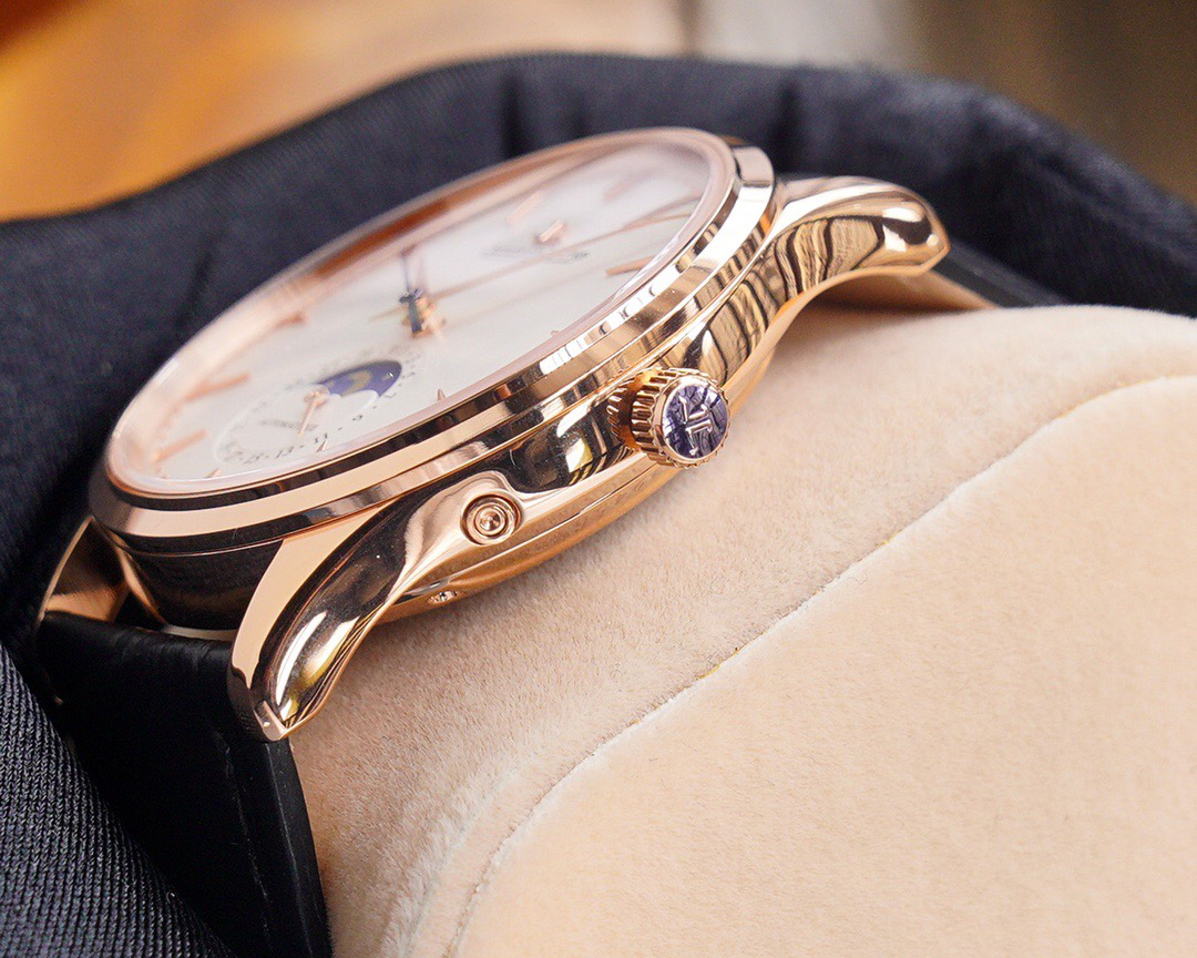 VF乱真版积家薄大师玫瑰金,目前市面 做到日历和月相所有功能和原装机芯一致 机芯采用稳定性 强的9015改装 原版Cal.925