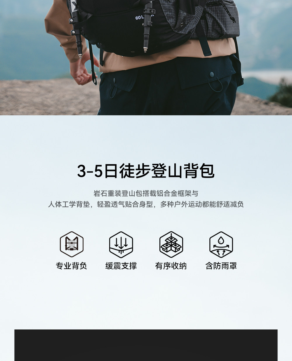 【岩石】伯希和户外登山包40升大容量重装徒步背包旅行轻量双肩包