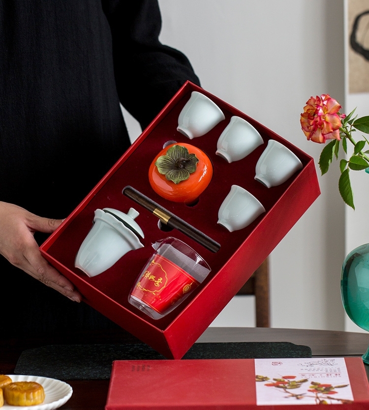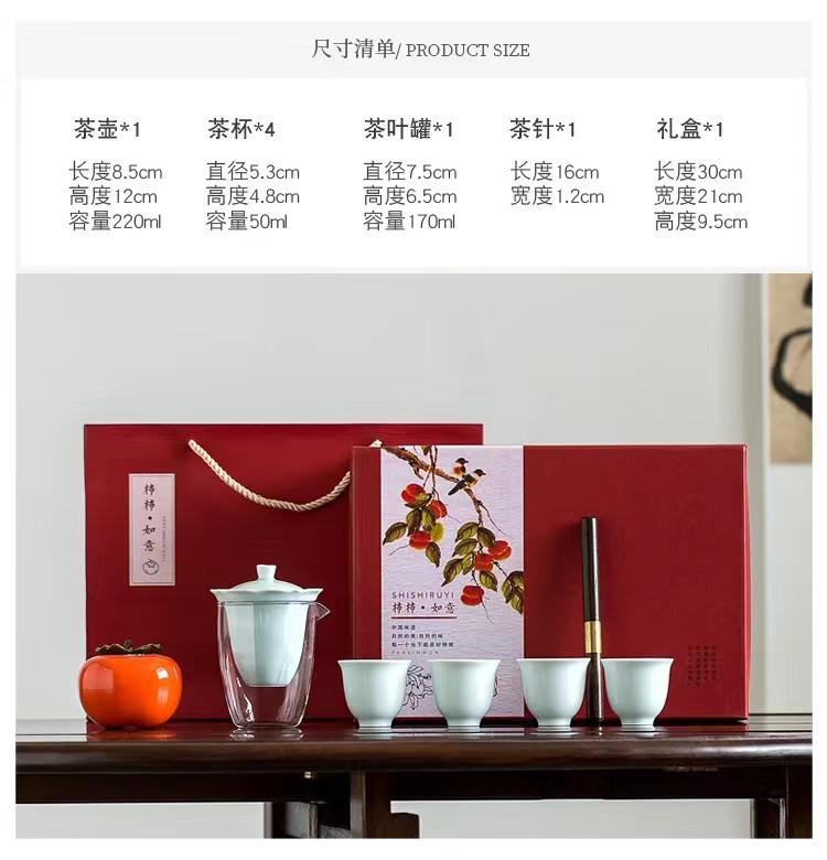 柿柿如意茶具套装(茶壶+茶杯+茶叶罐+茶针+礼盒)