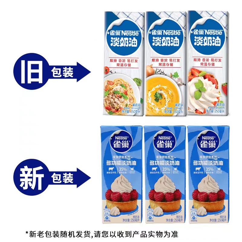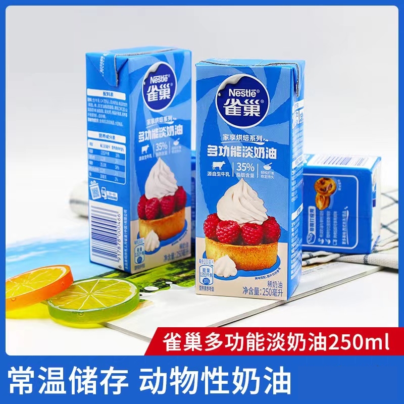 【新包装】雀巢多功能淡奶油 250ml 动物性稀奶油 蛋挞液原料 不好打发 如打发请看商品上说明再打
