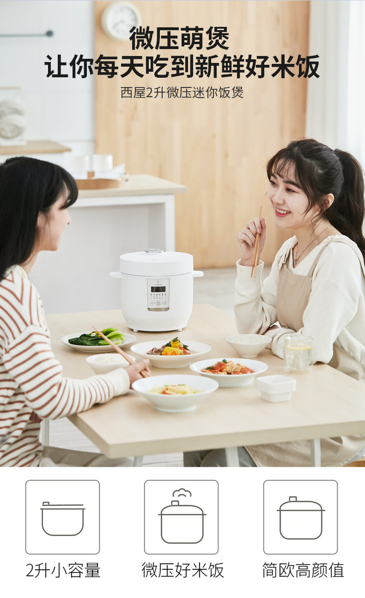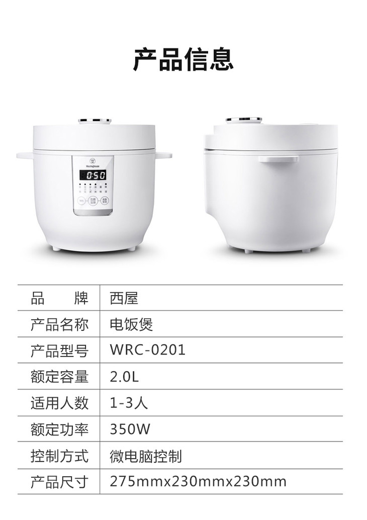 美国西屋(Westinghouse)电饭煲家用 多功能微压2L迷你电饭锅正品 电饭煲小1-2-3人 白色