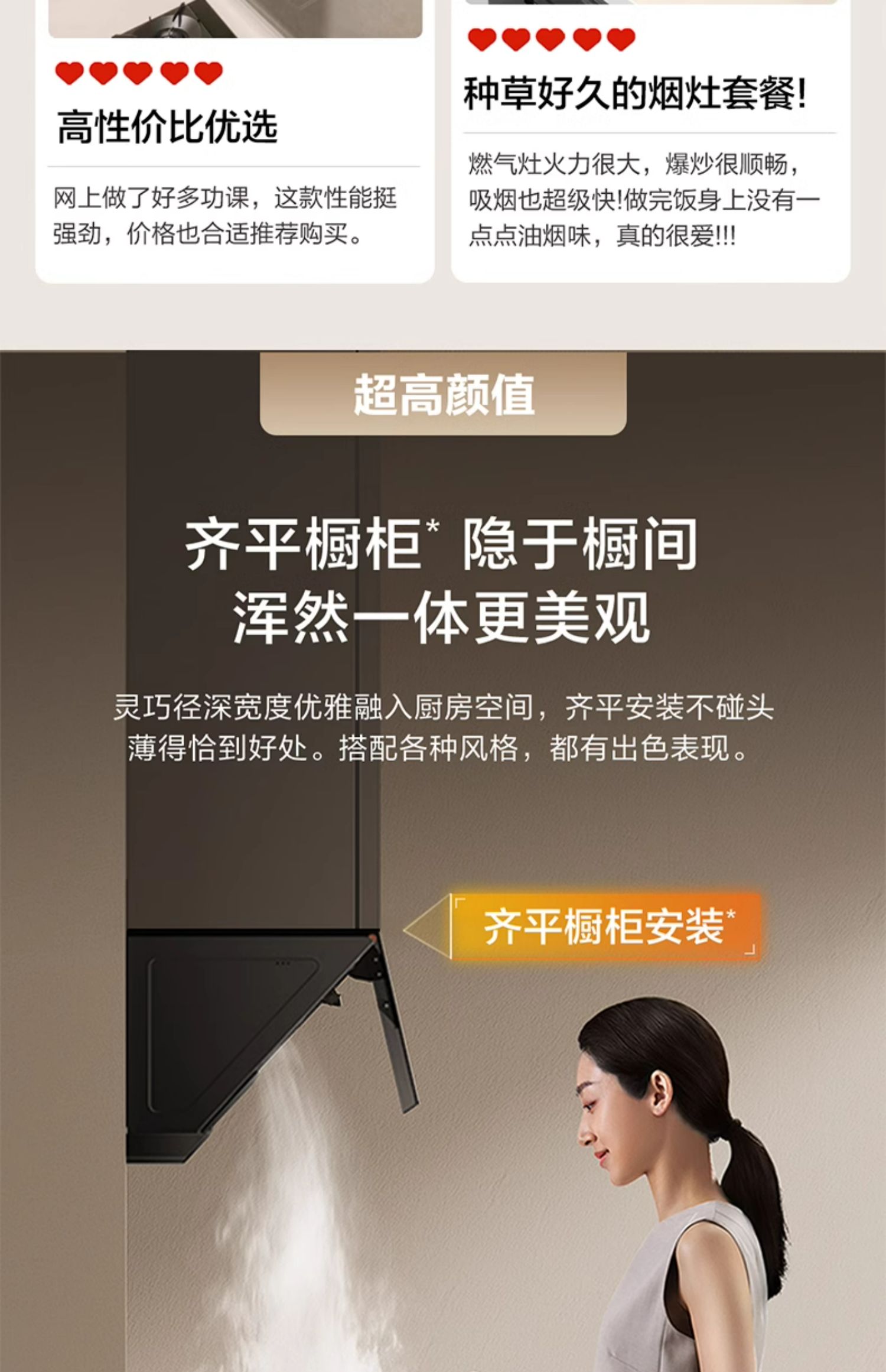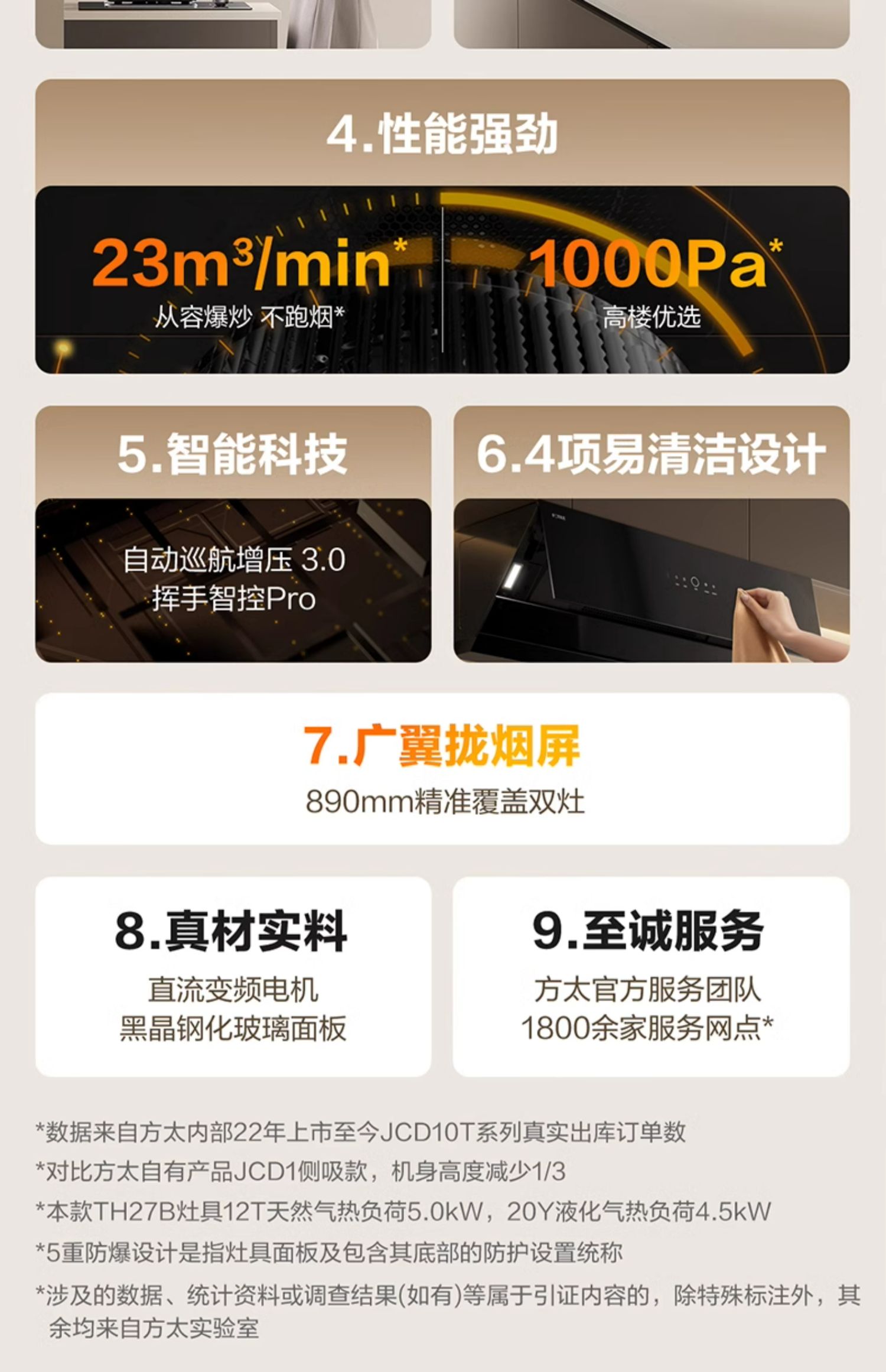 方太JCD10TB+02-TH29B变频23m³巡航风量侧吸式烟灶套装挥手开关家用吸油烟机燃气灶套餐5.2kw官方正品