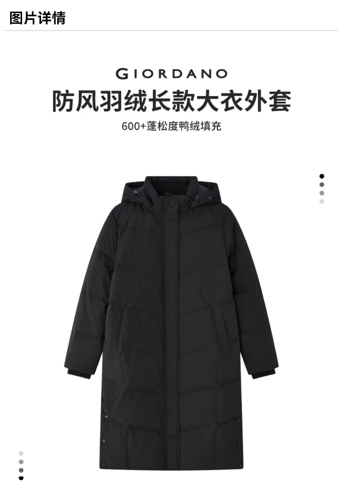 佐丹奴女装防风防泼水防污可机洗长款羽绒外套05375628
