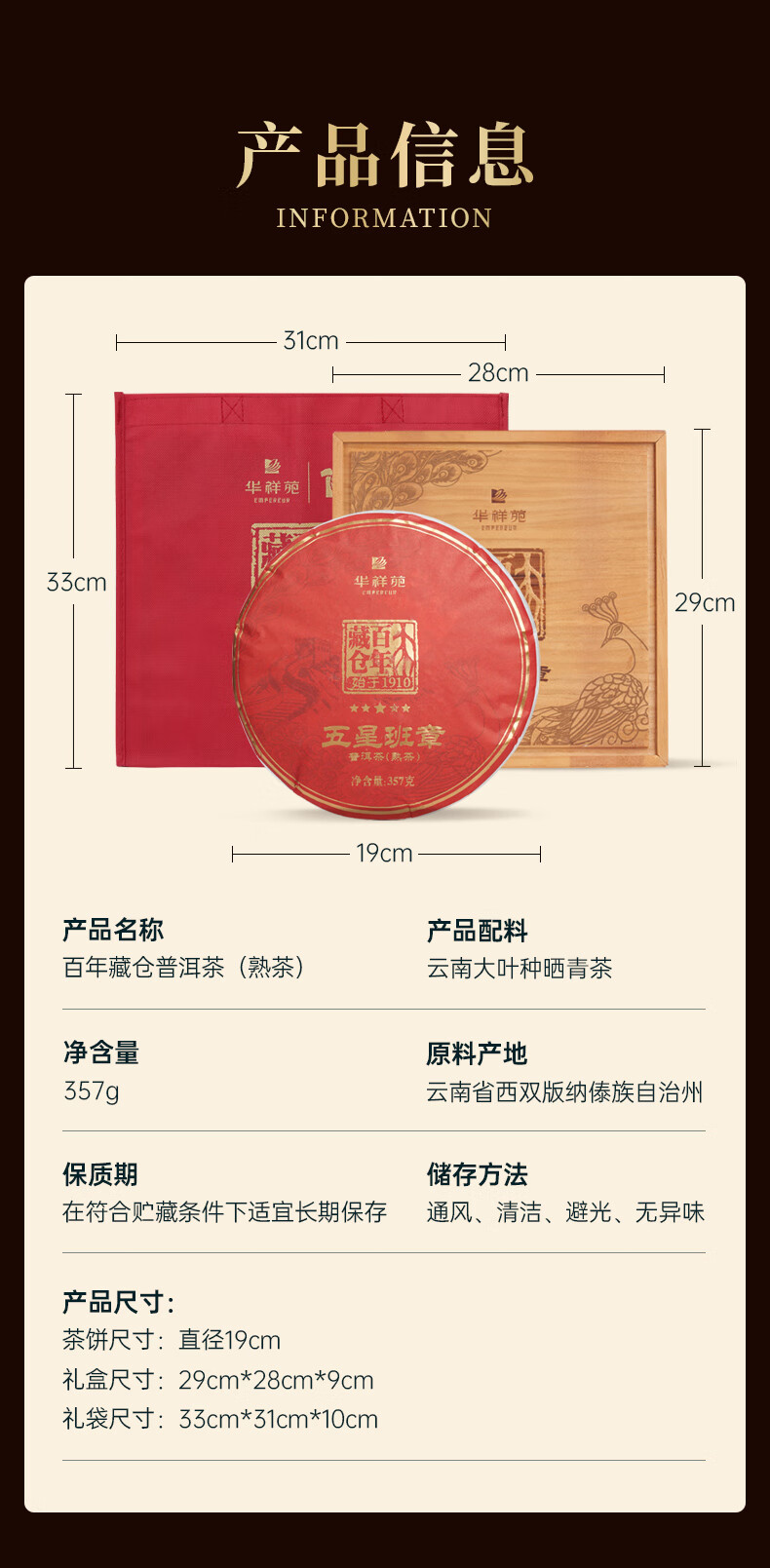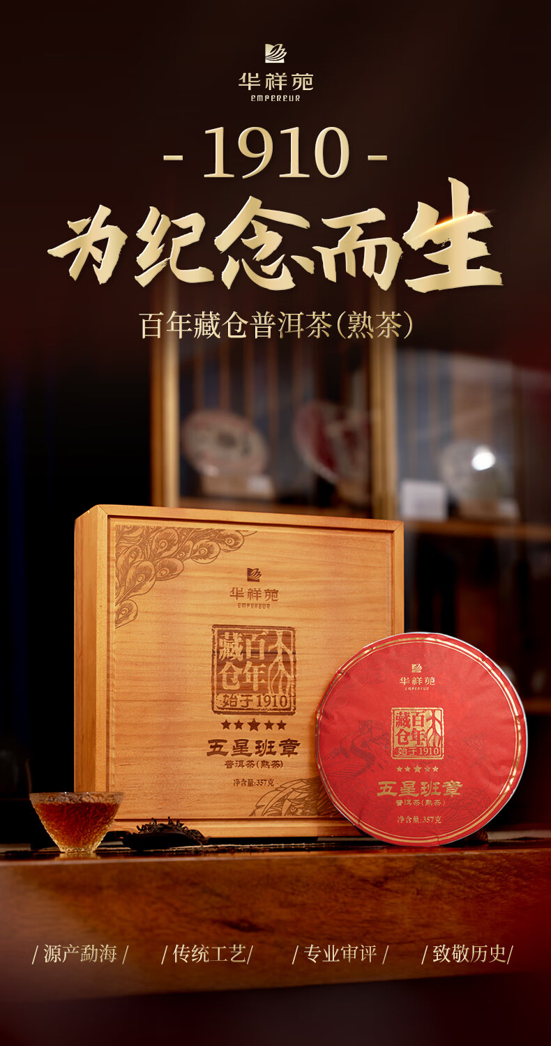 华祥苑普洱五星班章 百年藏仓普洱茶熟茶 云南勐海熟普班章