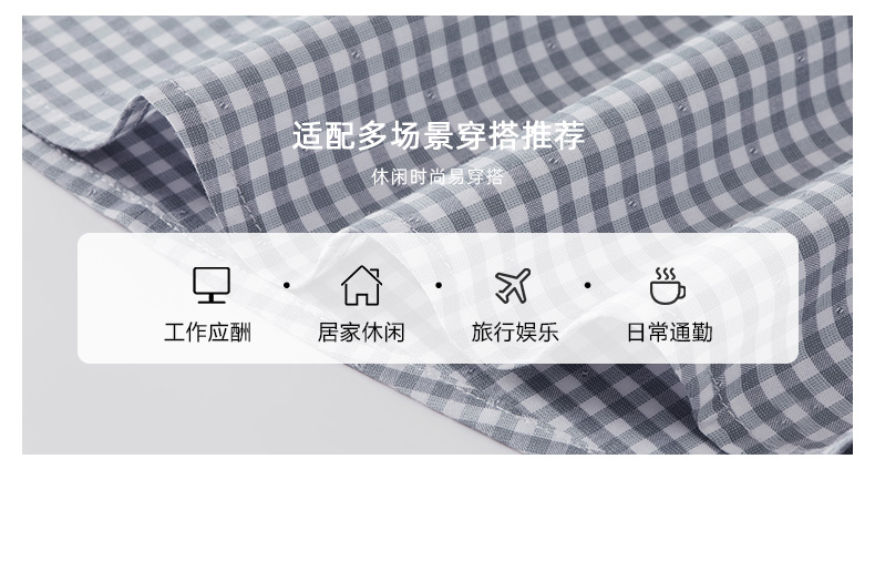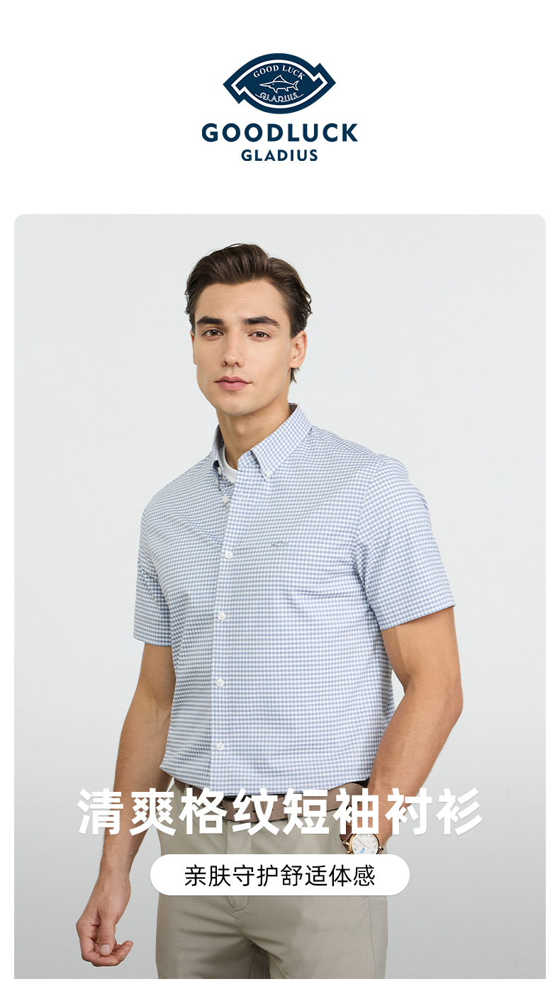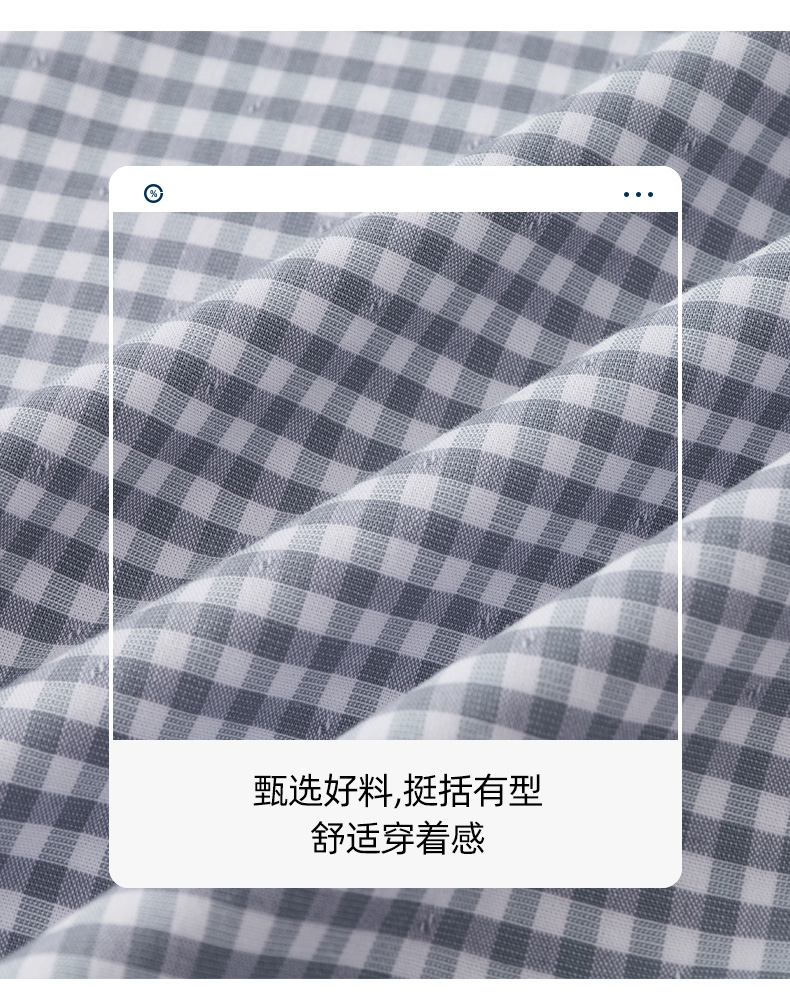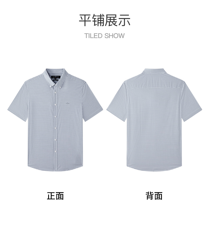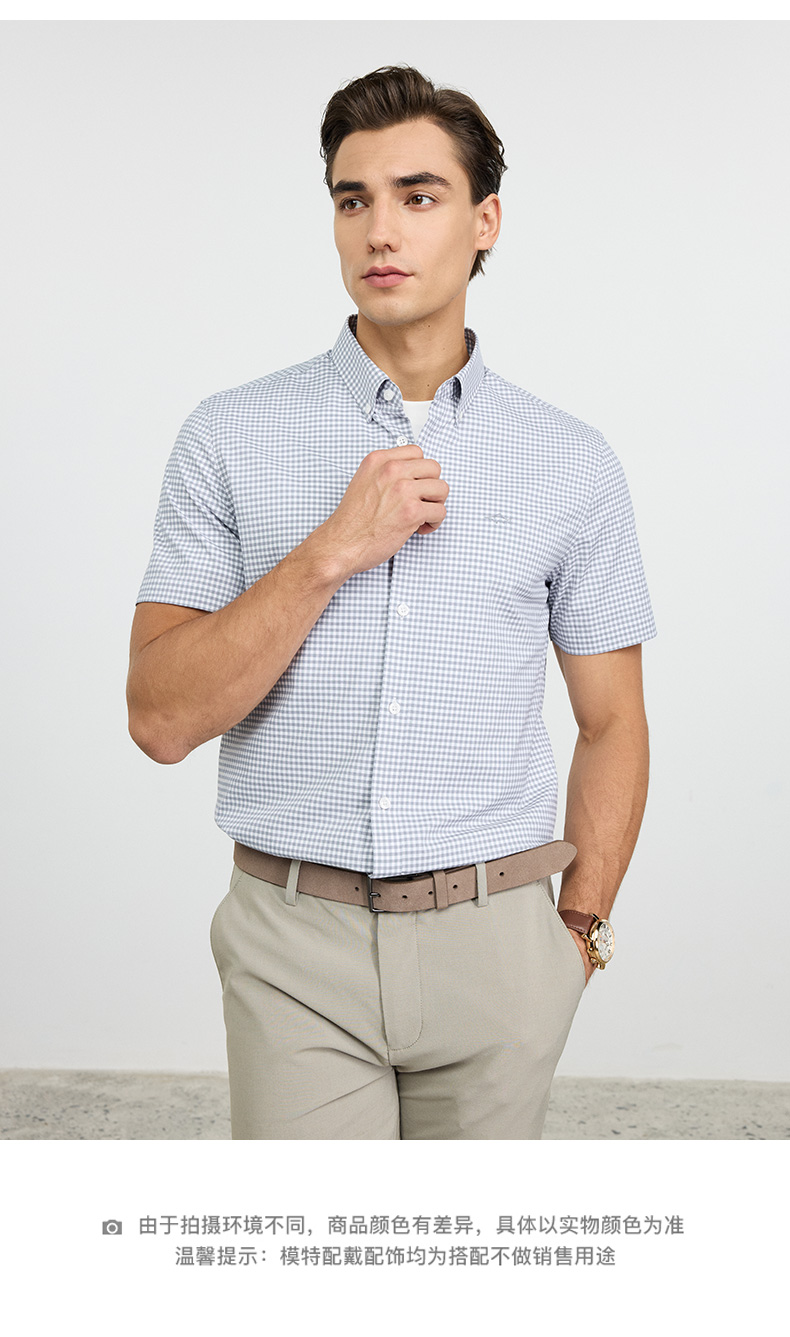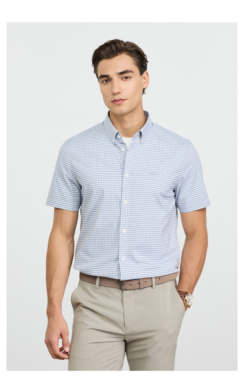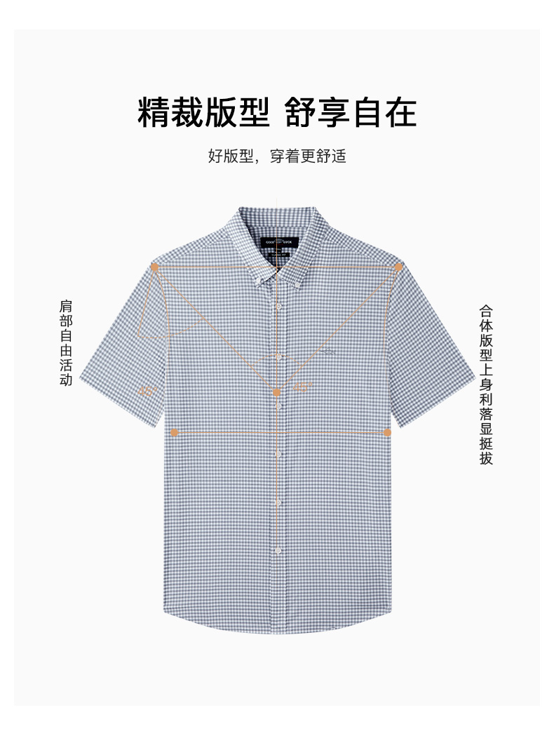 德鲨鲨鱼棉质短袖格子衬衣男青年2026夏新款休闲打底上衣弹力衬衫