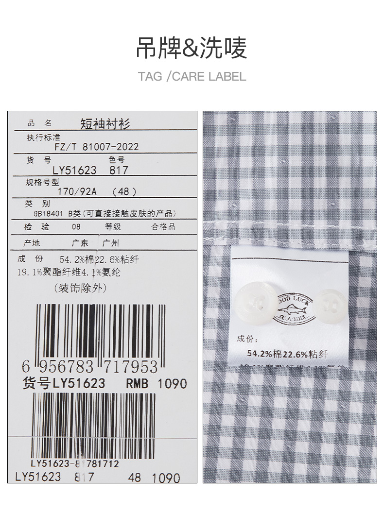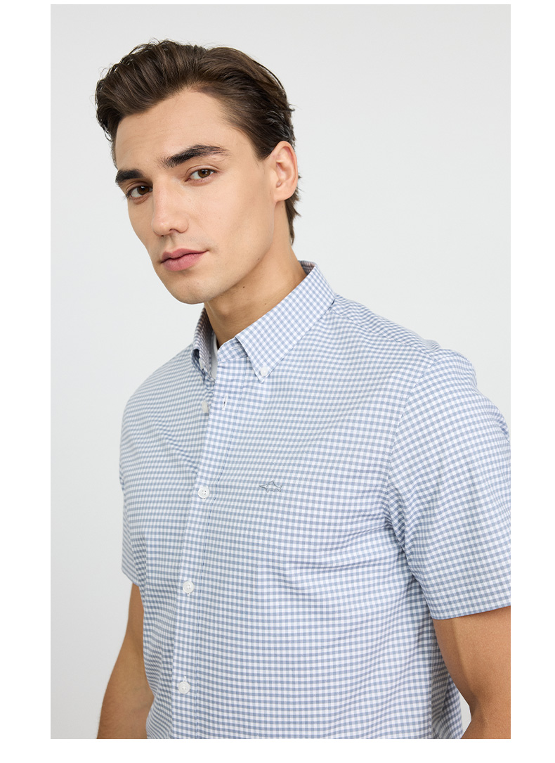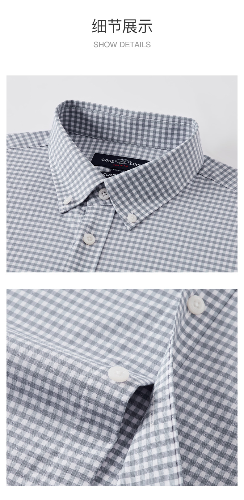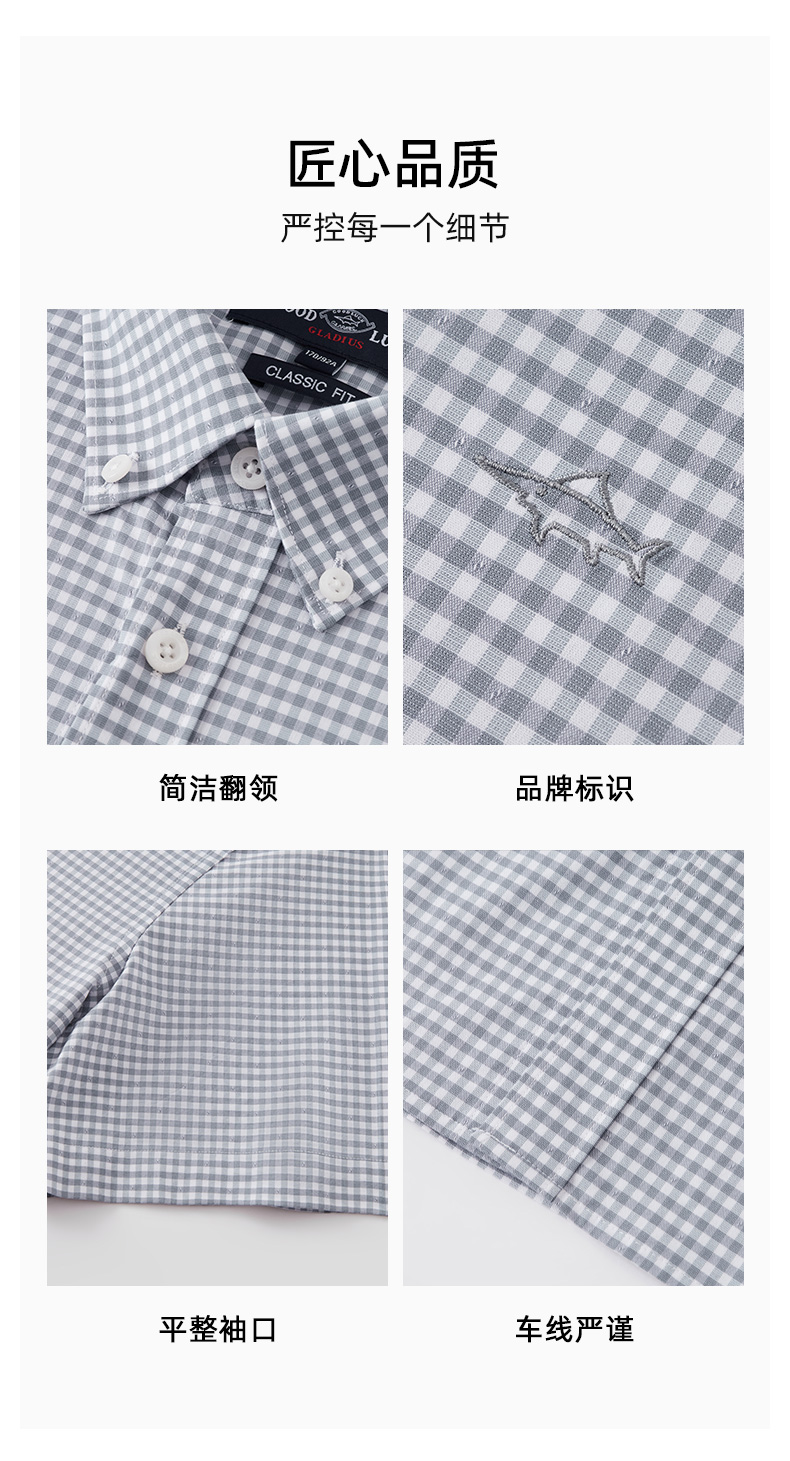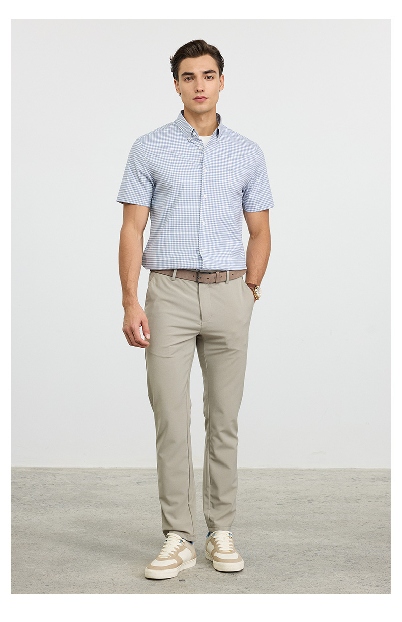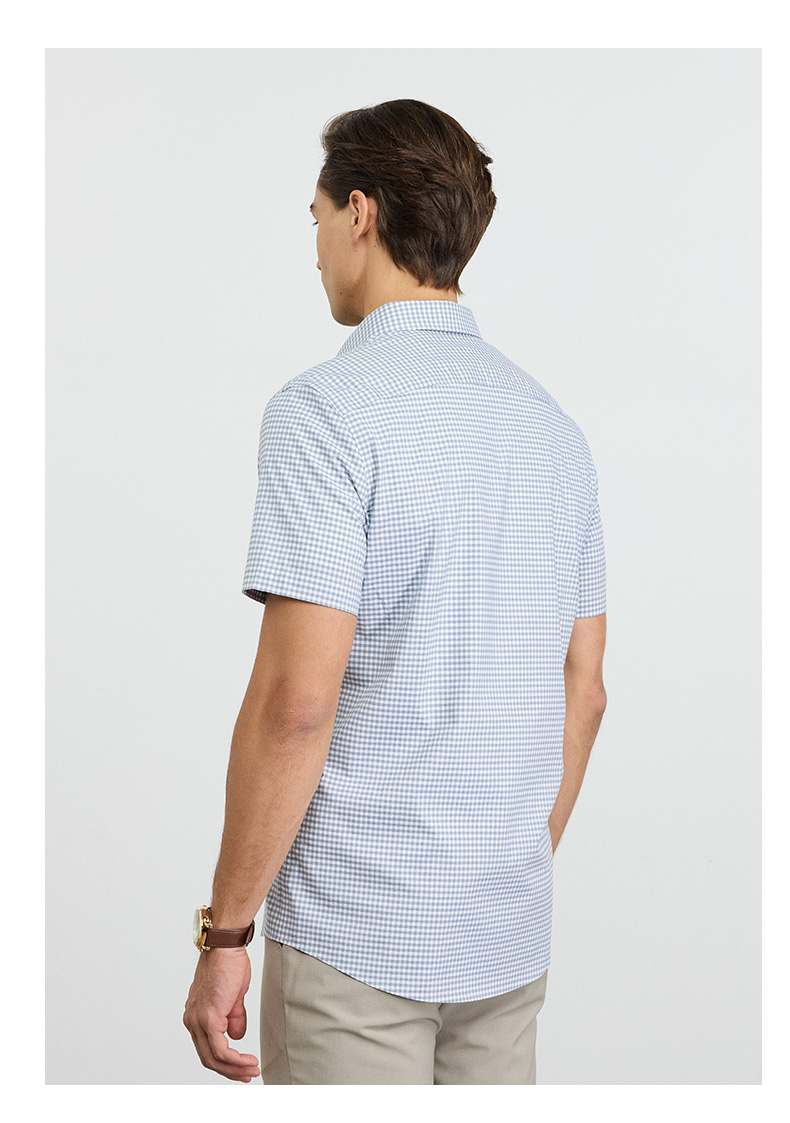德鲨鲨鱼棉质短袖格子衬衣男青年2026夏新款休闲打底上衣弹力衬衫