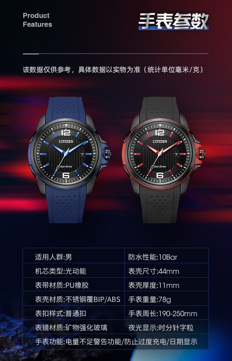 西铁城不锈钢覆BIP/ABS光动能运动系列手表AW1658-02E
