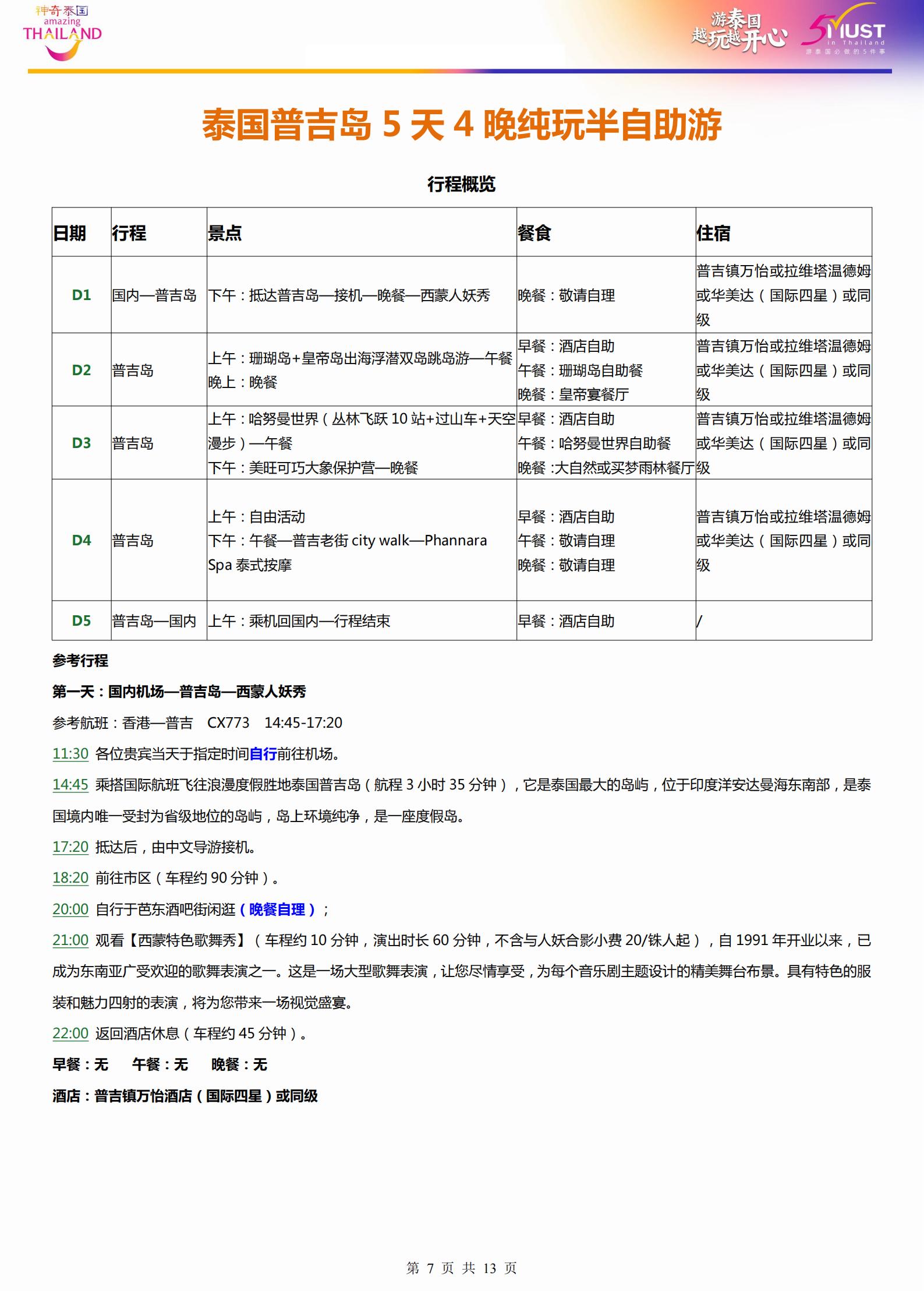 【五一】<泰国普吉岛5天4晚半自助游>西蒙人妖秀、珊瑚岛+皇帝岛出海浮潜双岛跳岛游、哈努曼世界(丛林飞跃 10 站+过山车+天空漫步)、美旺可巧大象保护营、Phannara Spa 泰式按摩