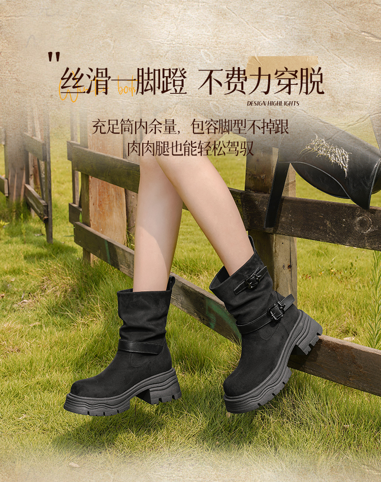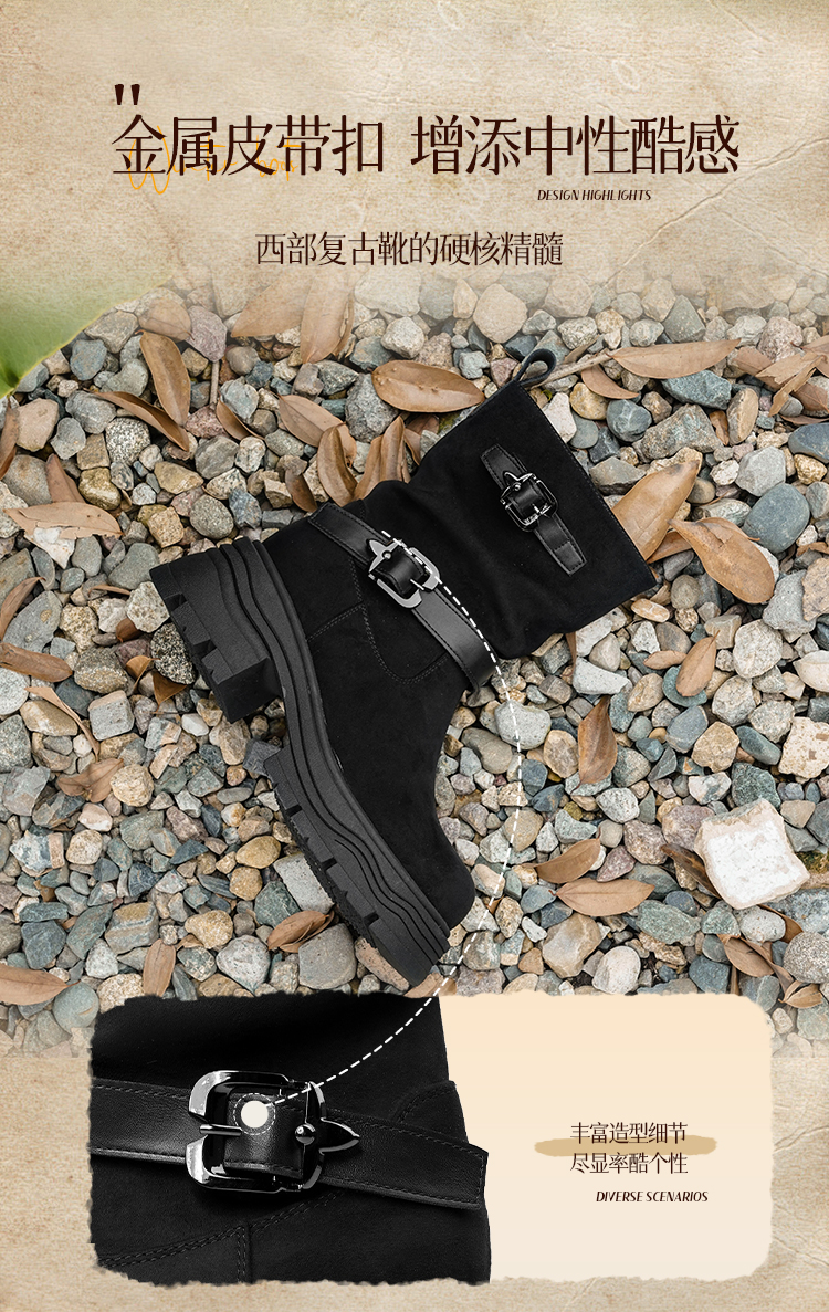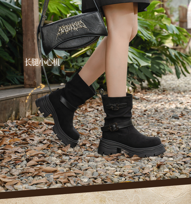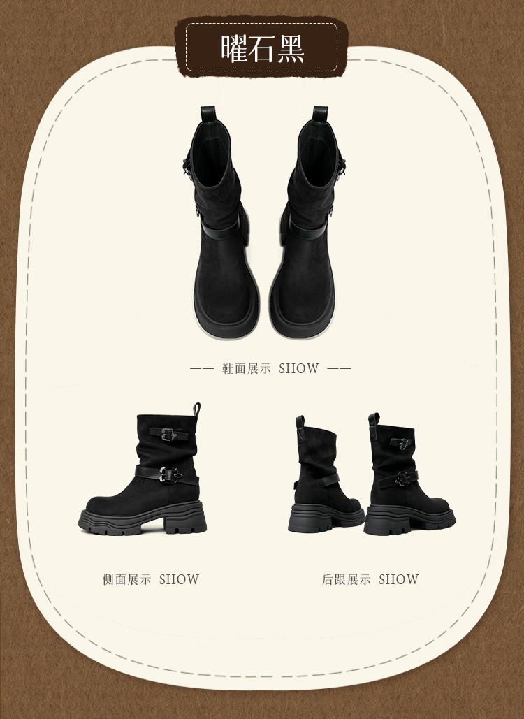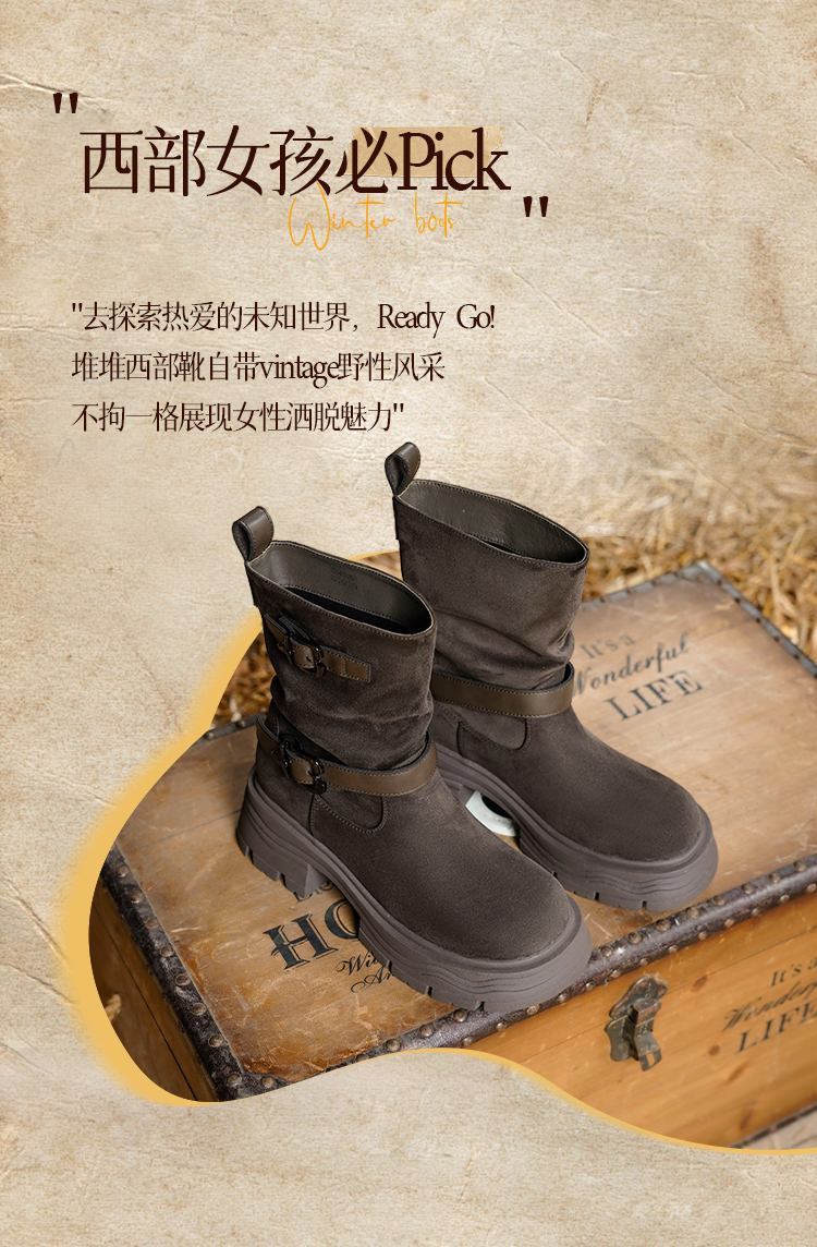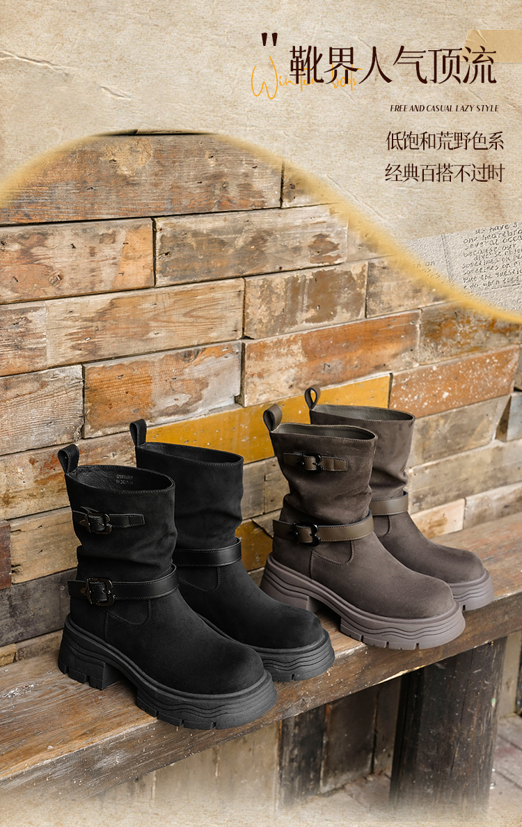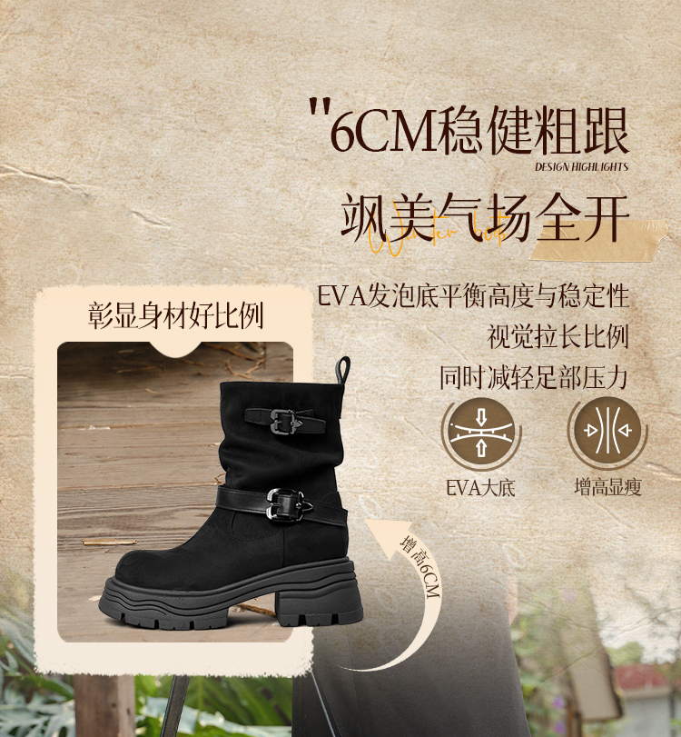 预售|Safiya/索菲娅2025小个子厚底增高皮带扣百搭复古中筒堆堆西部靴SFD4116M69