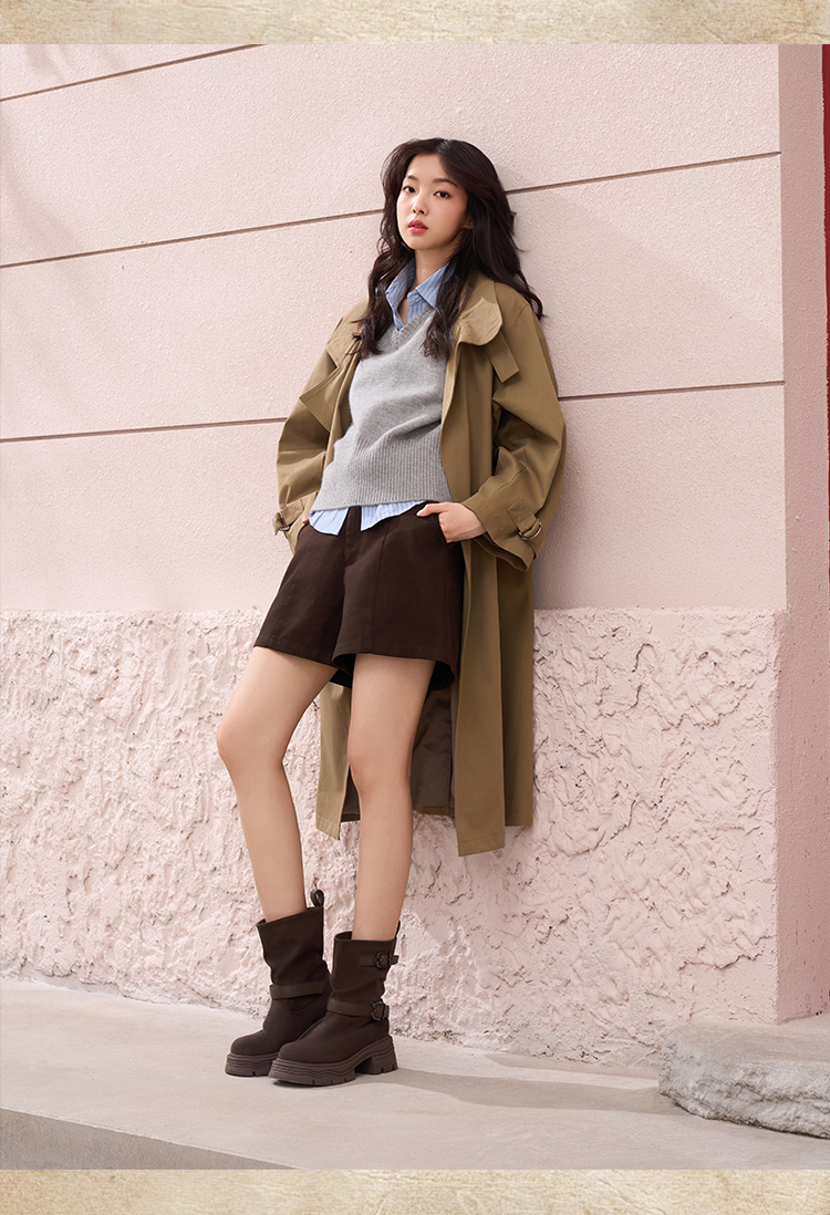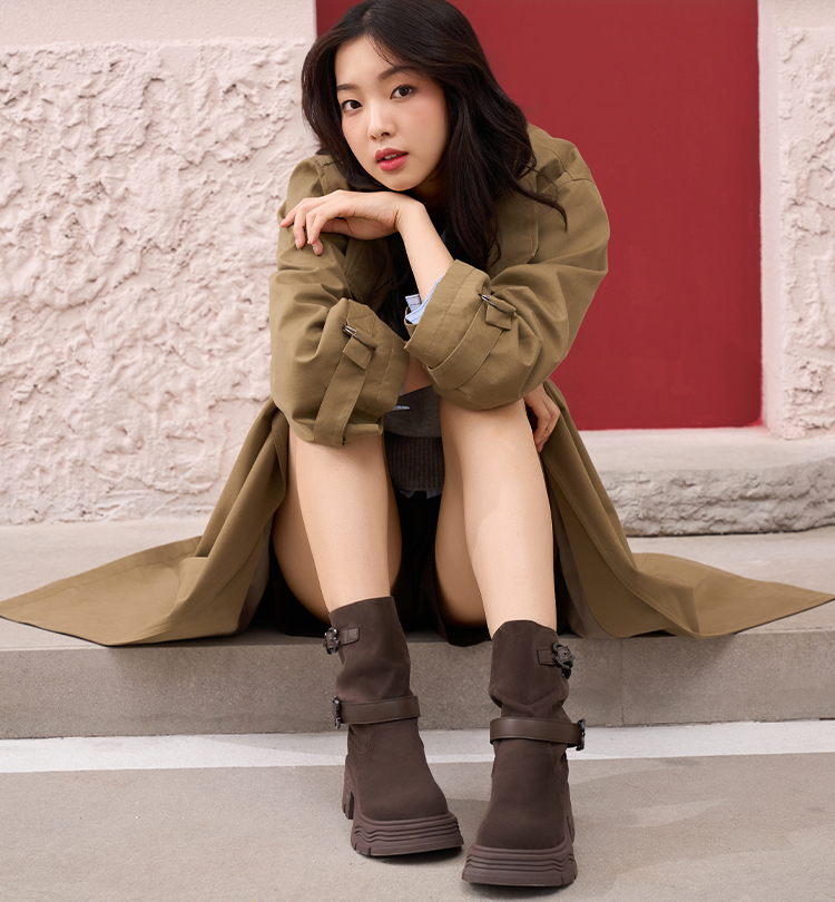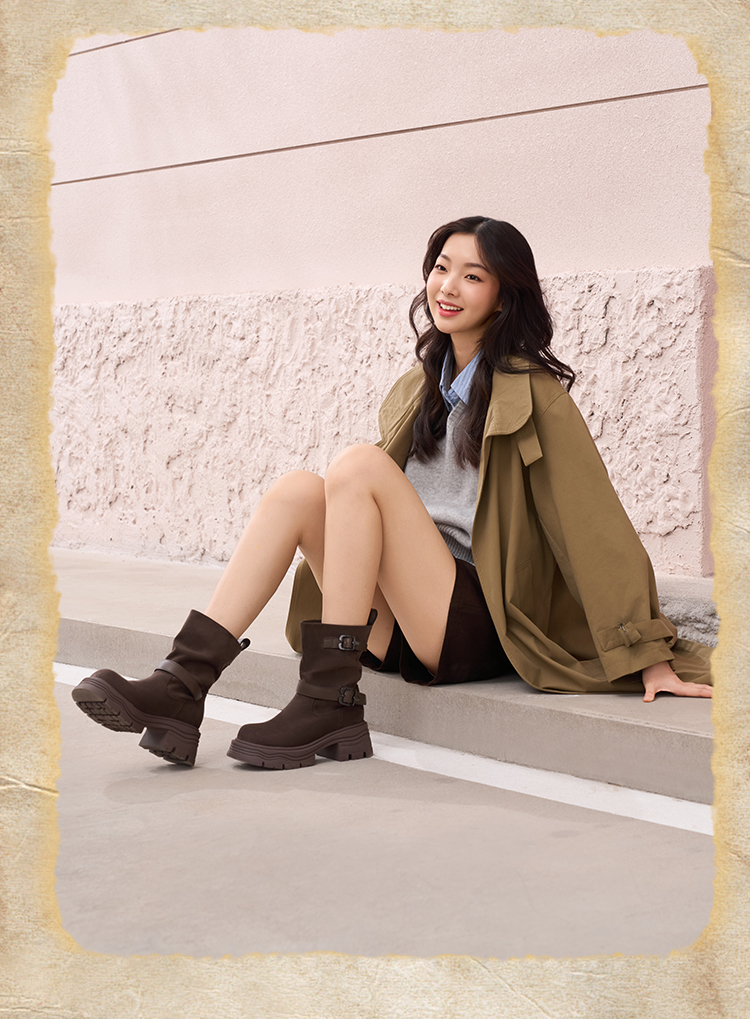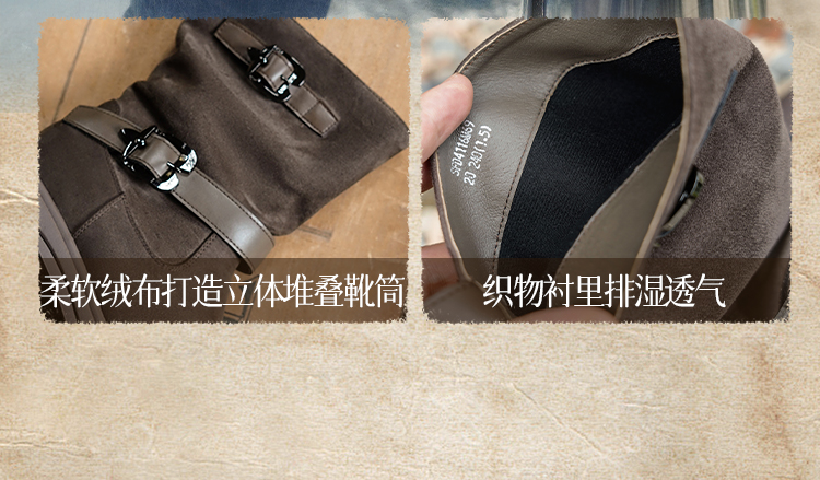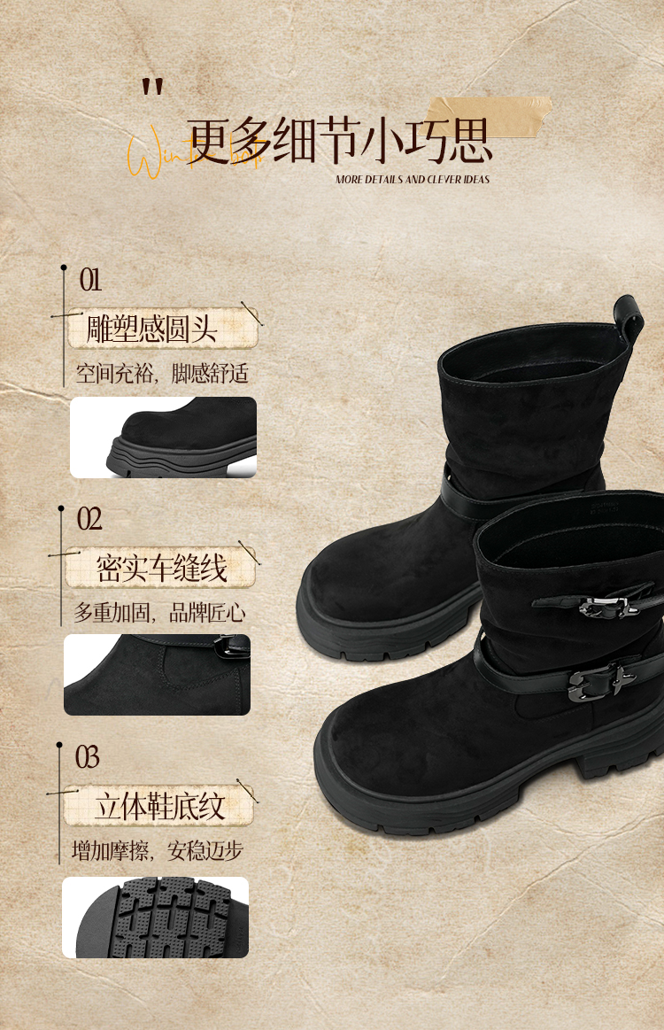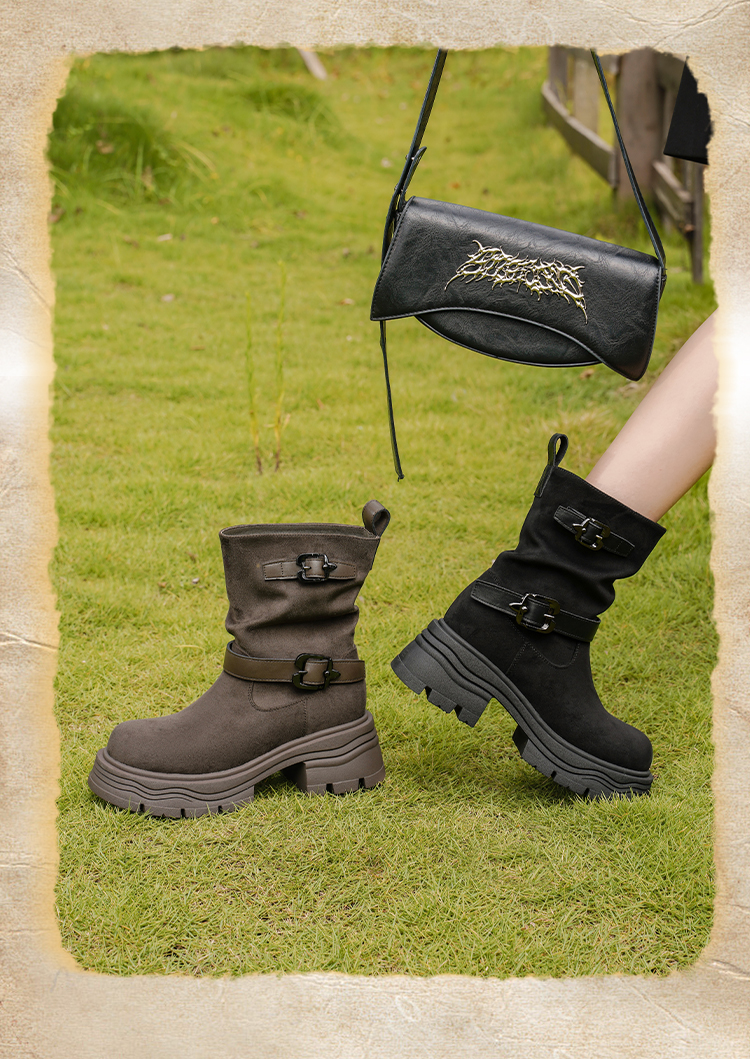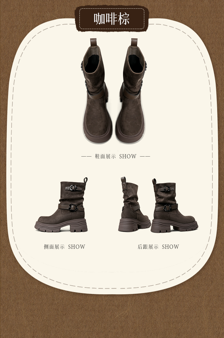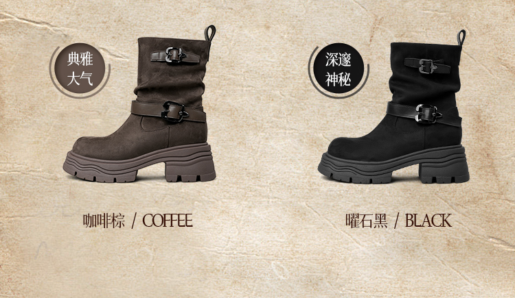 预售|Safiya/索菲娅2025小个子厚底增高皮带扣百搭复古中筒堆堆西部靴SFD4116M69