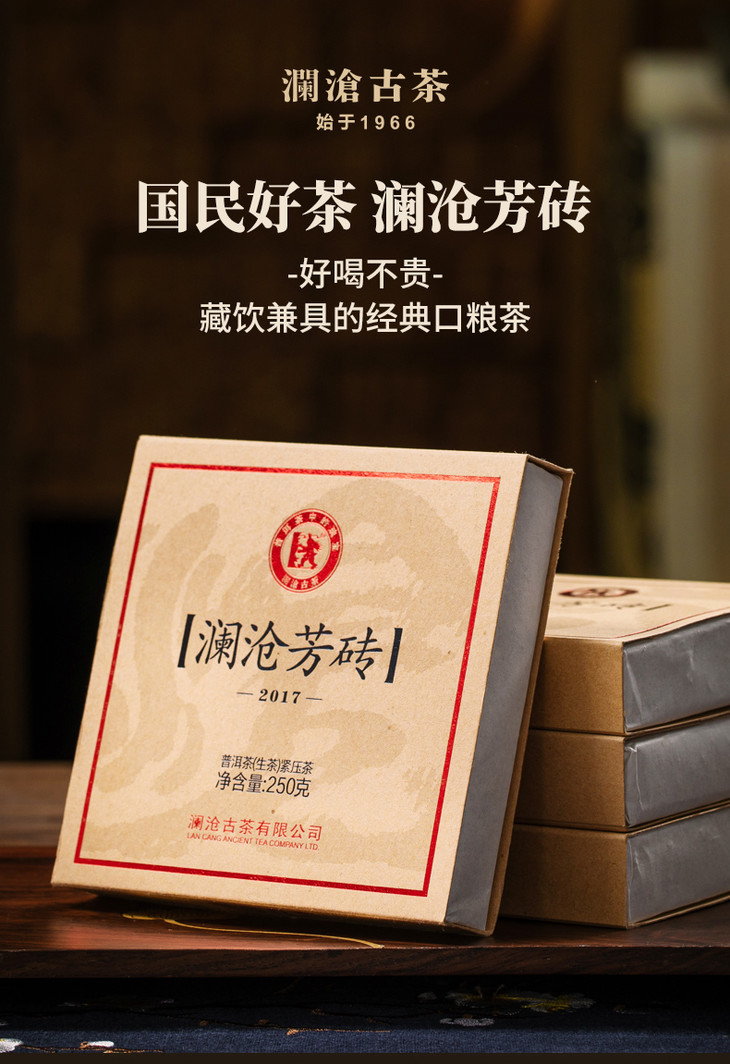 2017年澜沧芳砖(普洱生茶)250g*2+2022年澜沧芳砖(普洱熟茶)250*2(不参与店铺买送满送)
