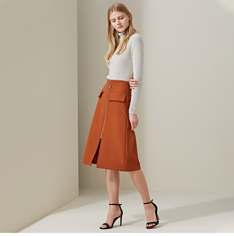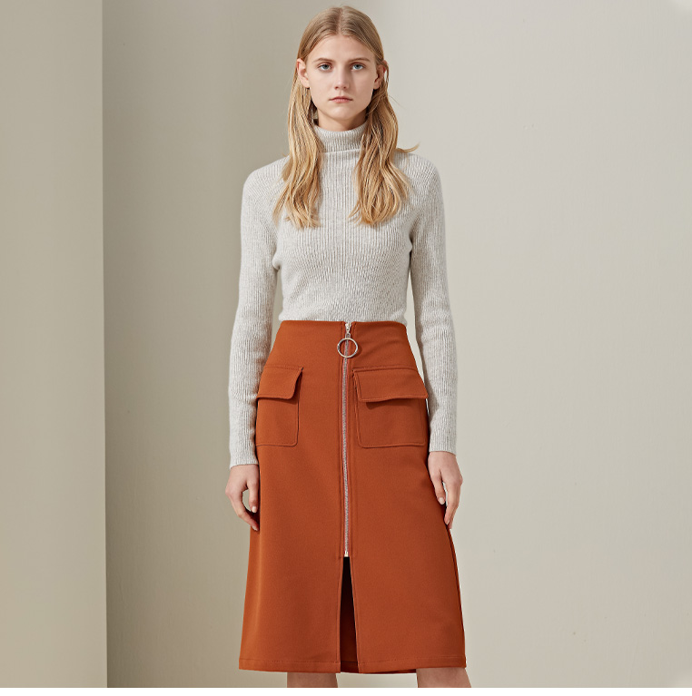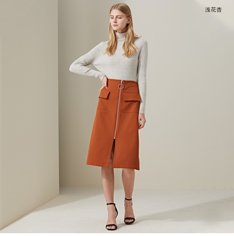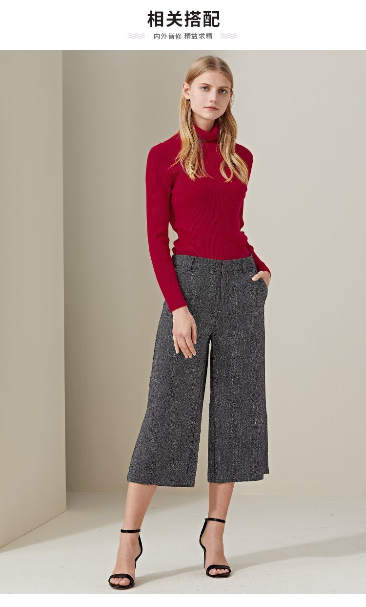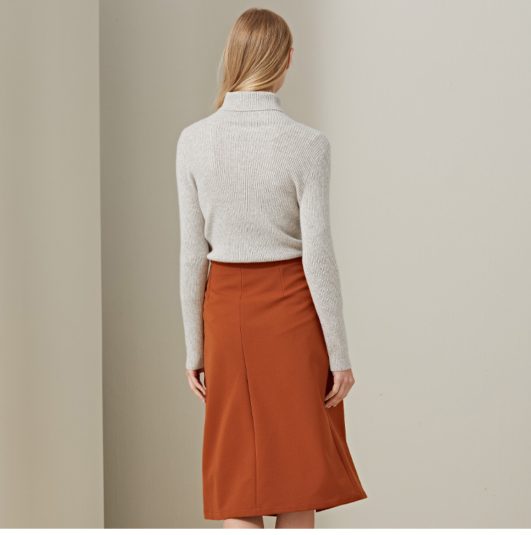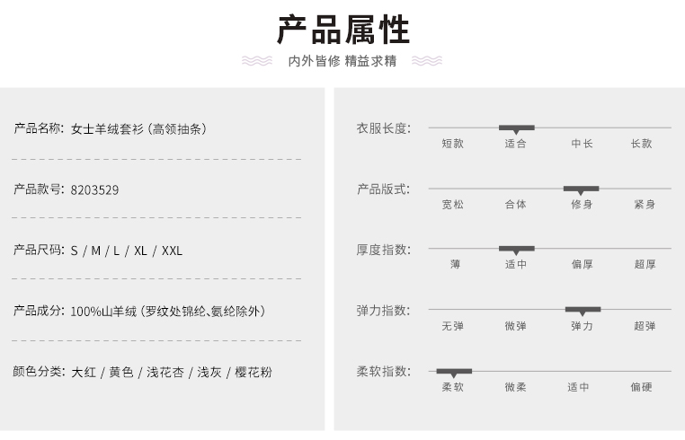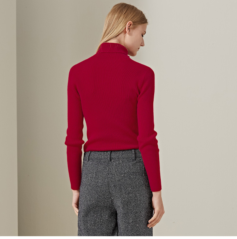 羊绒世家2020年早春新品女士高领100%山羊绒衫时尚抽条修身毛衣