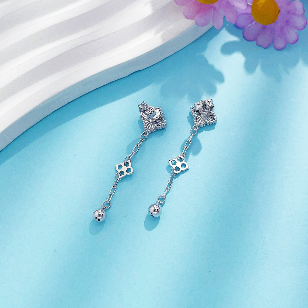 【限时8.8折】【线上铂金馆】PT950 铂金空心倒模工艺流苏铂金珠四叶花耳饰耳吊(PTES00027)预售产品下单后不退款不退货不换货不补差价)