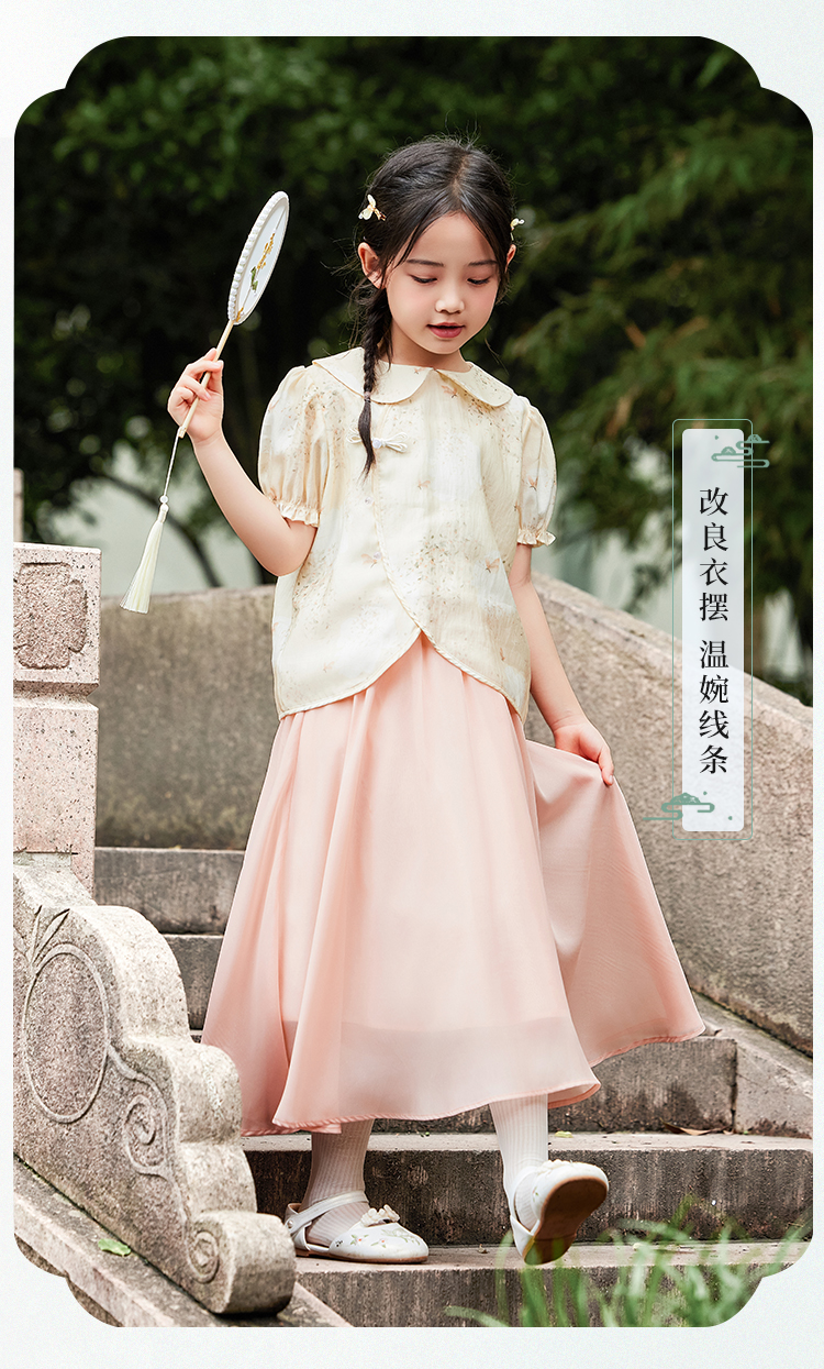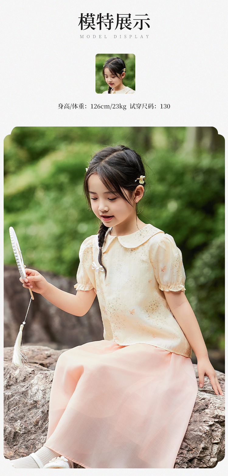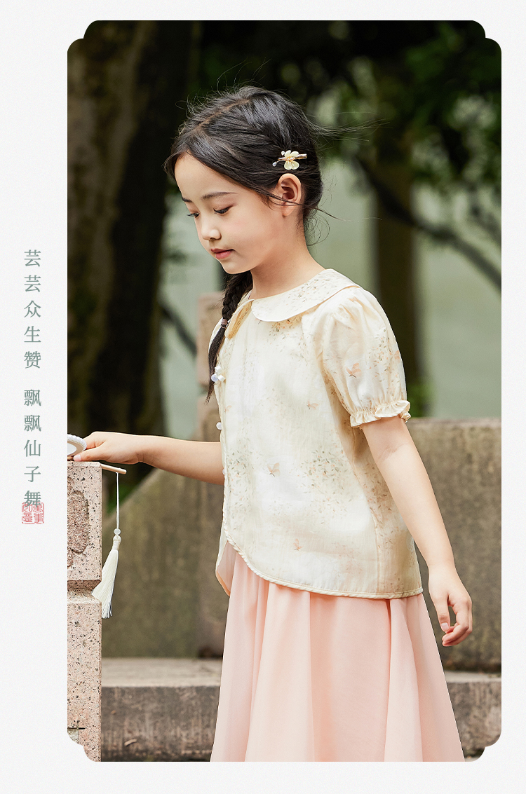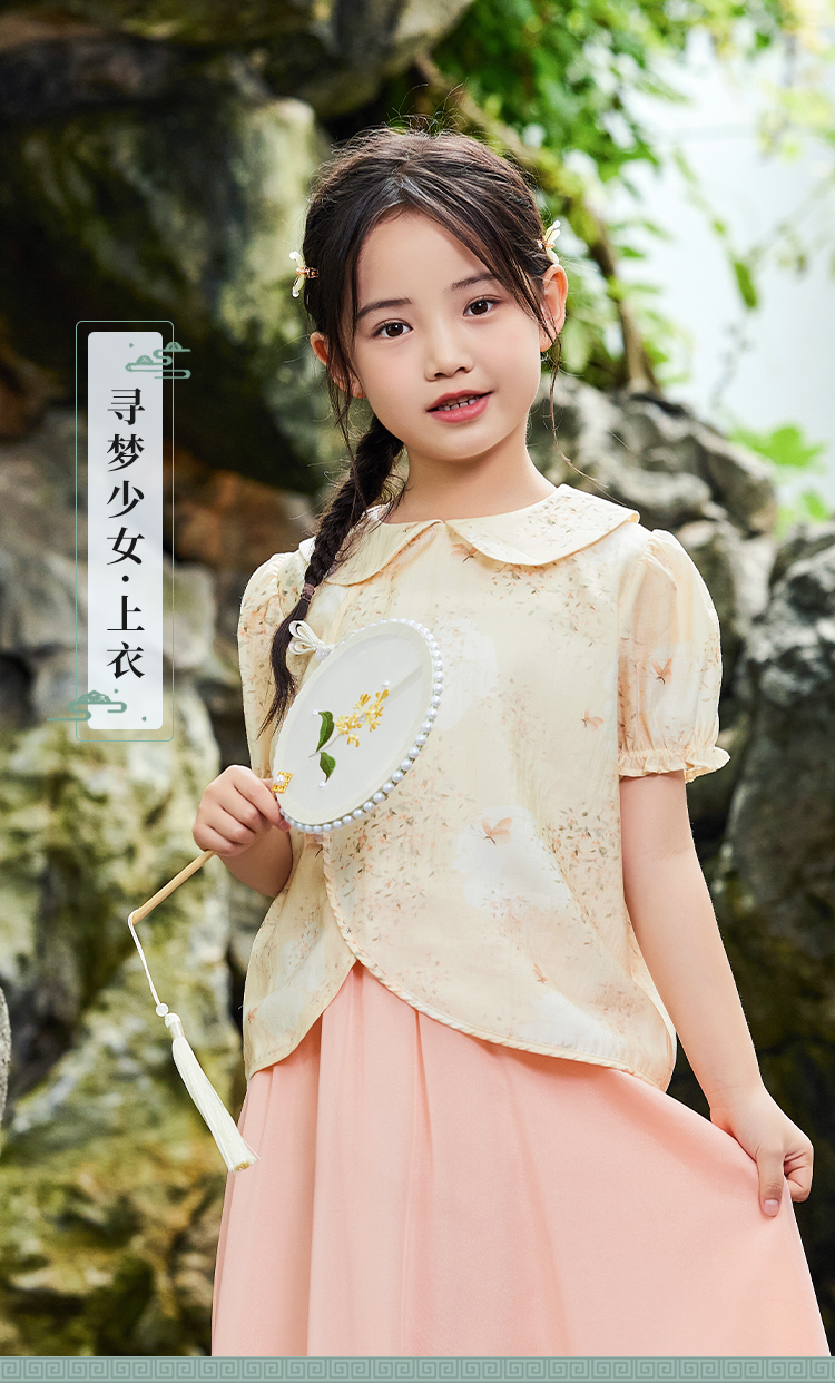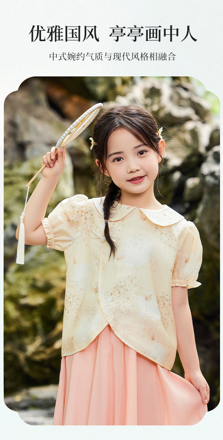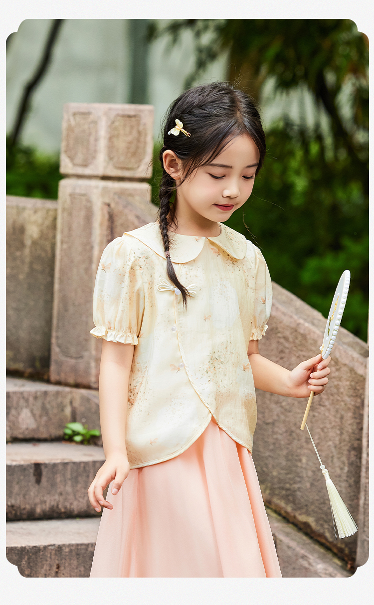 【英氏】【120-165】女童新中式短袖娃娃领温婉碎花儿童衬衣