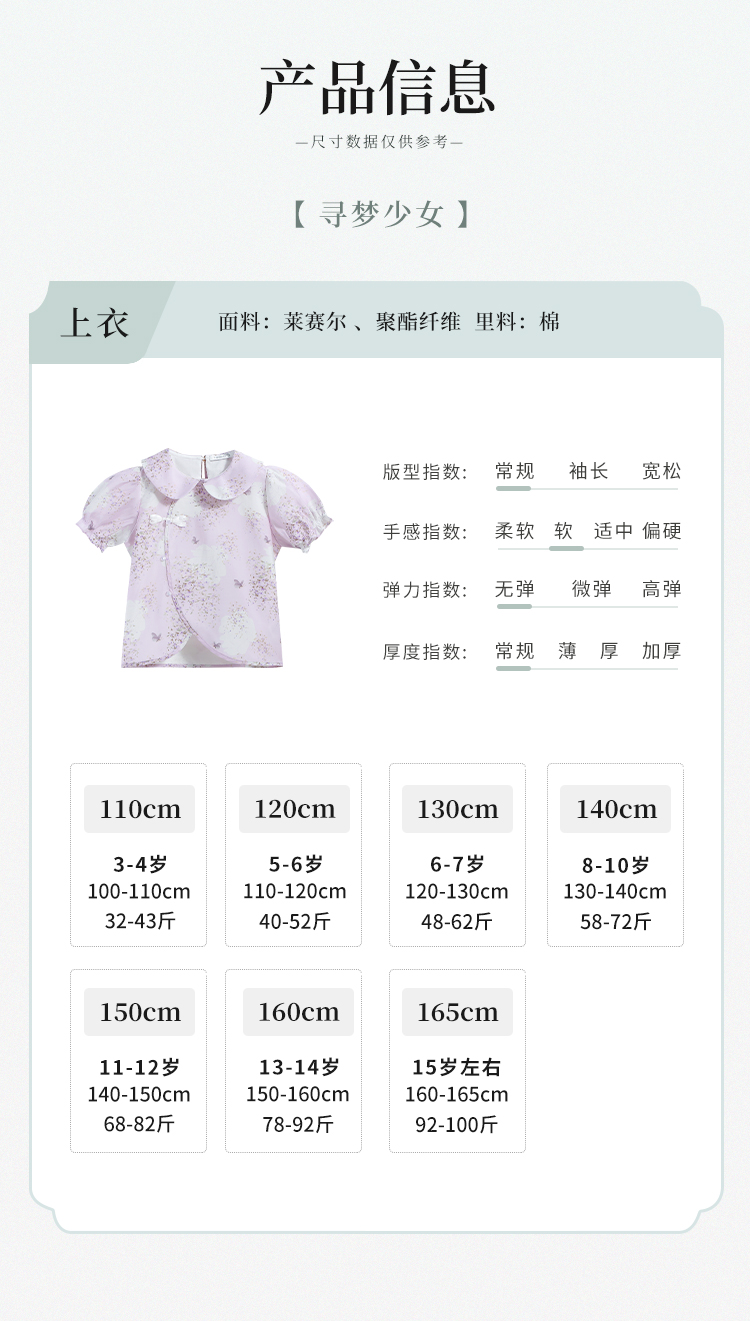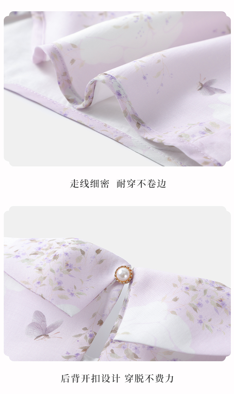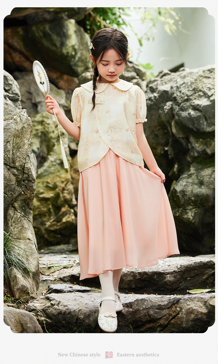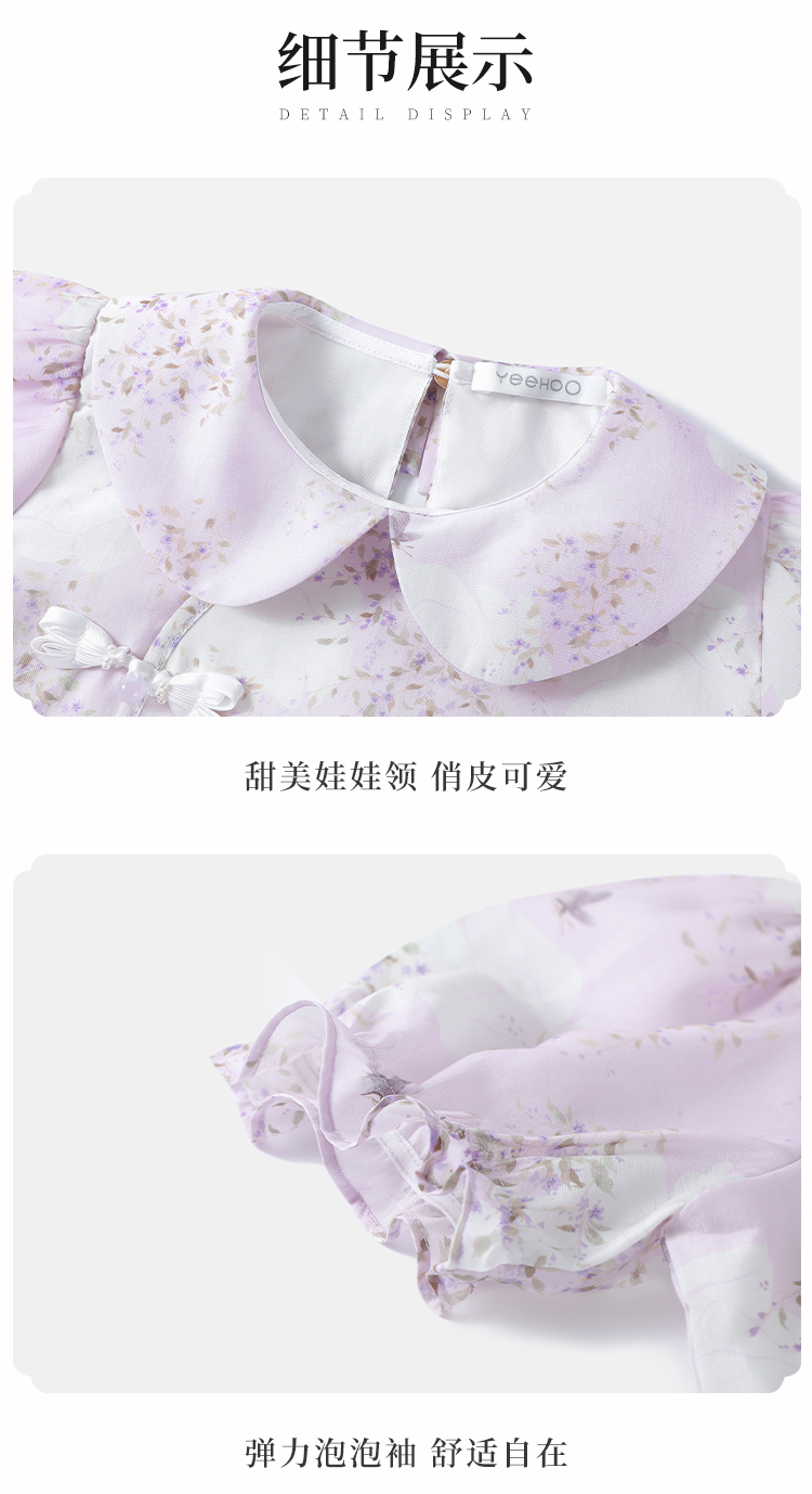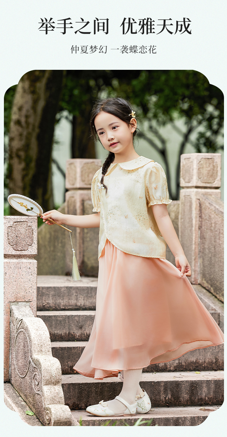 【英氏】【120-165】女童新中式短袖娃娃领温婉碎花儿童衬衣