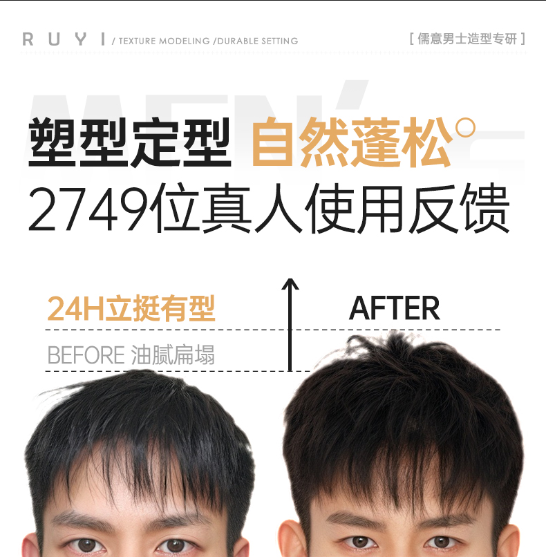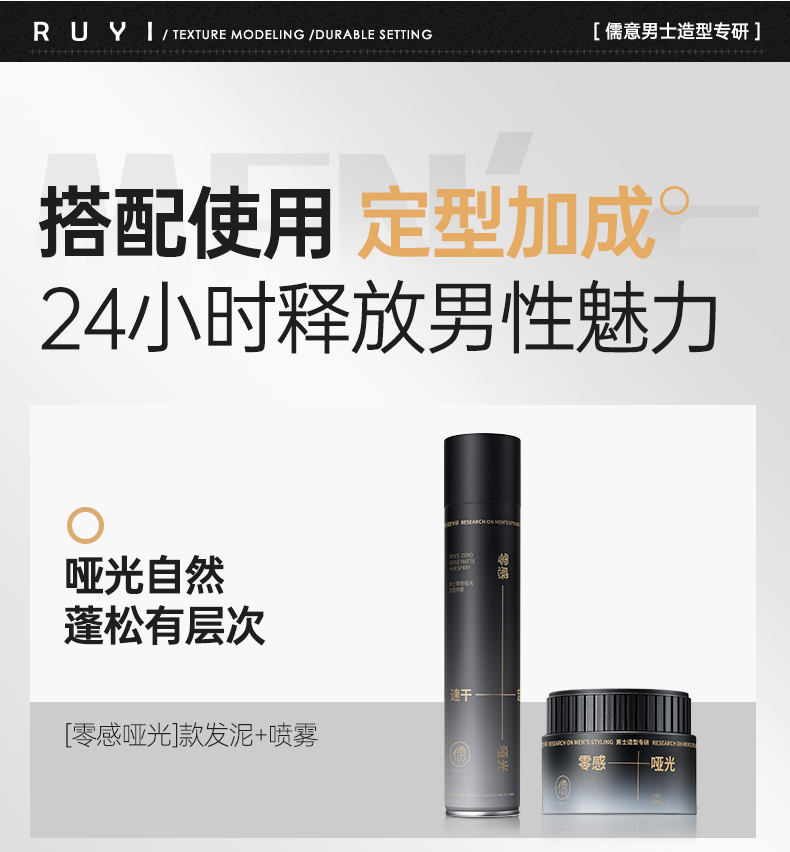 儒意男士零感哑光塑型发泥120g 发泥发蜡男士自然蓬松持久塑型定型发胶啫喱膏|儒意官方商城