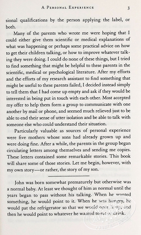 本书通过个人经历和科学研究成果,探讨了为什么一些显然很聪明的孩子直到“正常”年龄很久之后才开始说话,这是一个痛苦而又令人困惑的谜团。作者作为这样一个孩子的父亲,自己的经历促成了五十多对类似孩子的父母的形成。这些父母在试图应对不会说话的孩子和不理解他们的机构时所经历的痛苦和沮丧是一个非凡而感人的故事。