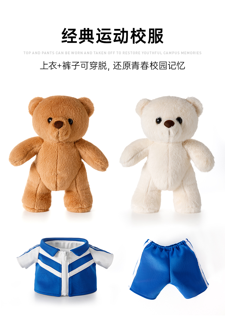 【实付满199送钥匙扣】【校服小熊】可定制创意毛绒小熊公仔儿童玩具服装可脱送礼学生礼物