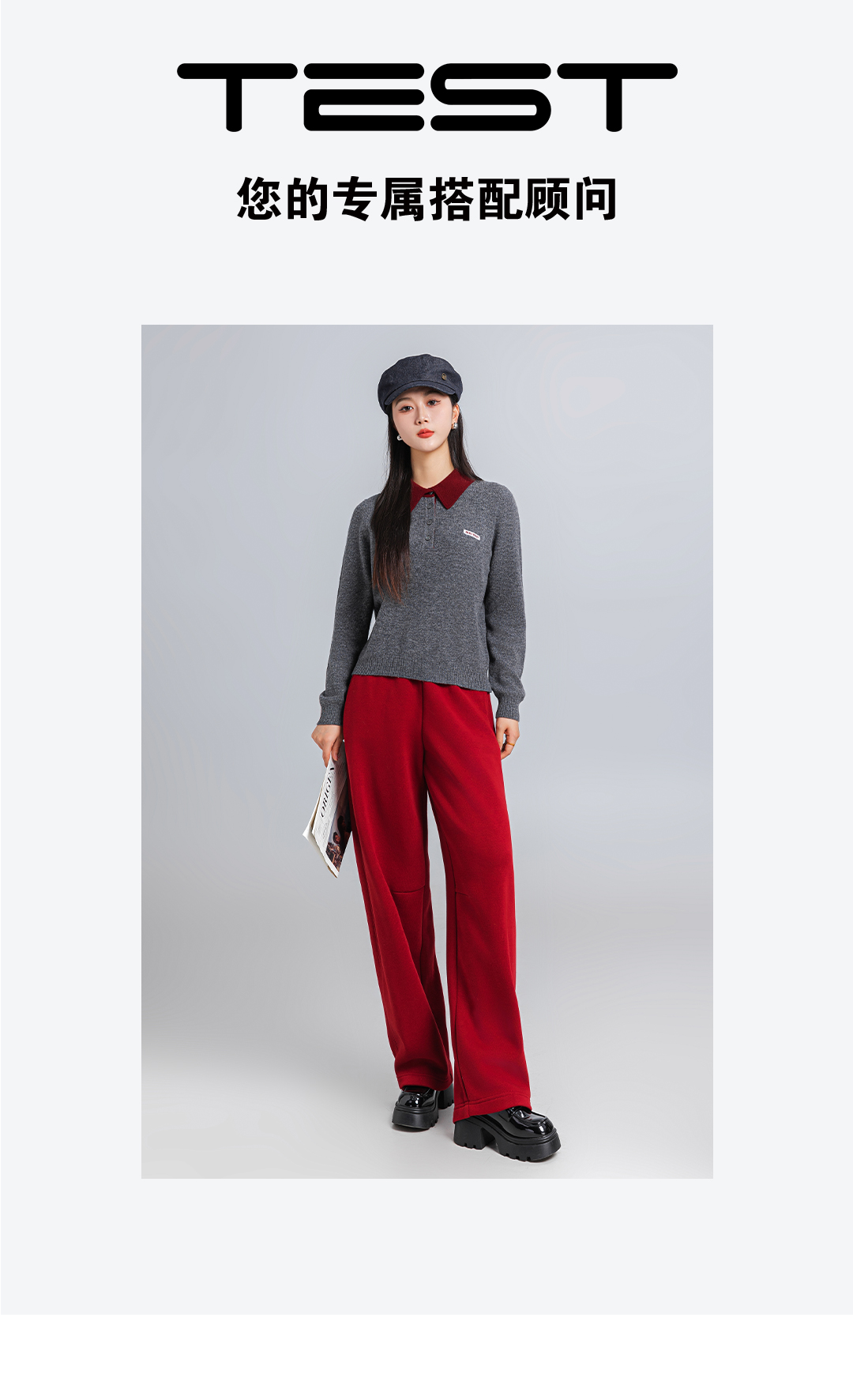 春上新高级感撞色翻领假两件灰色POLO领羊毛衣1261015