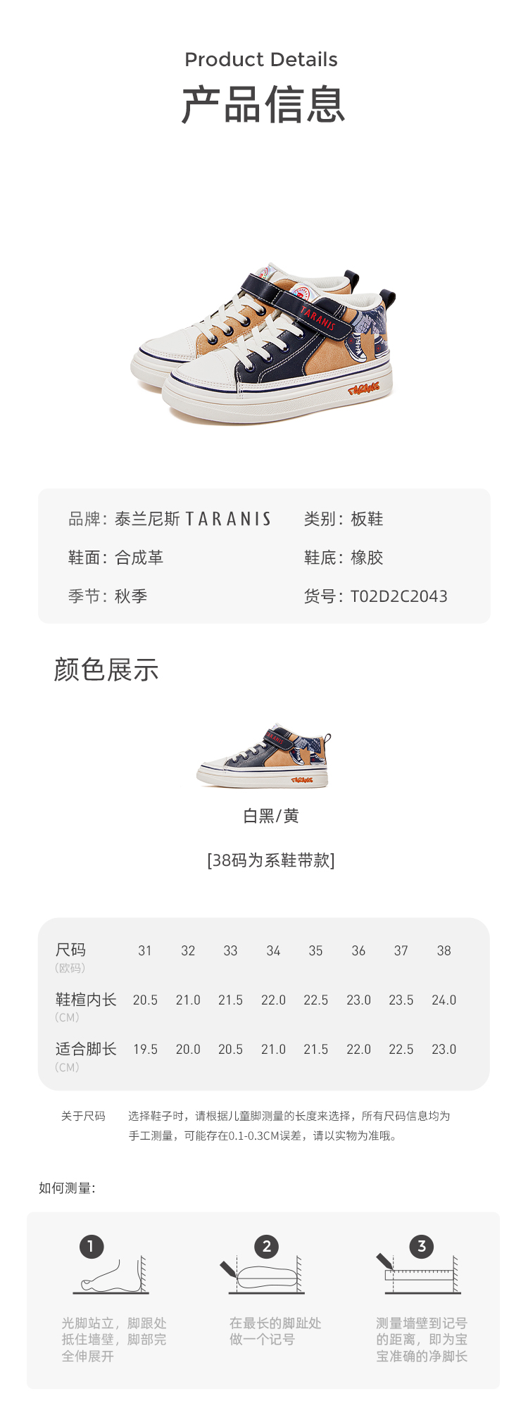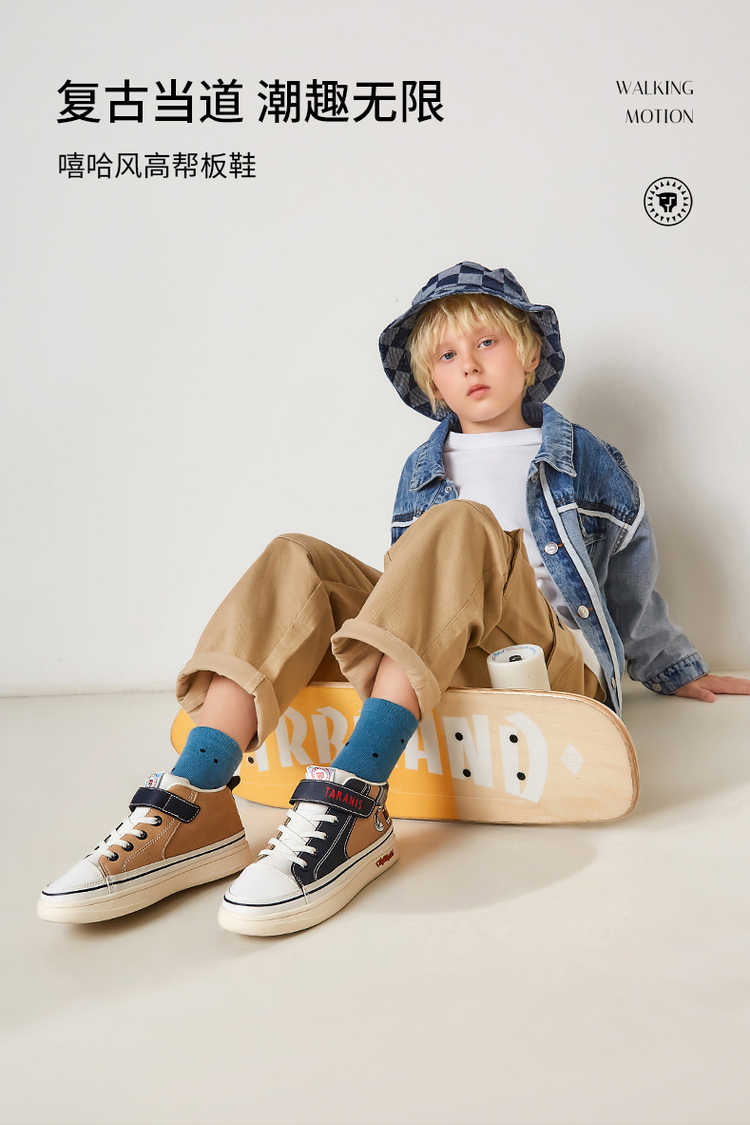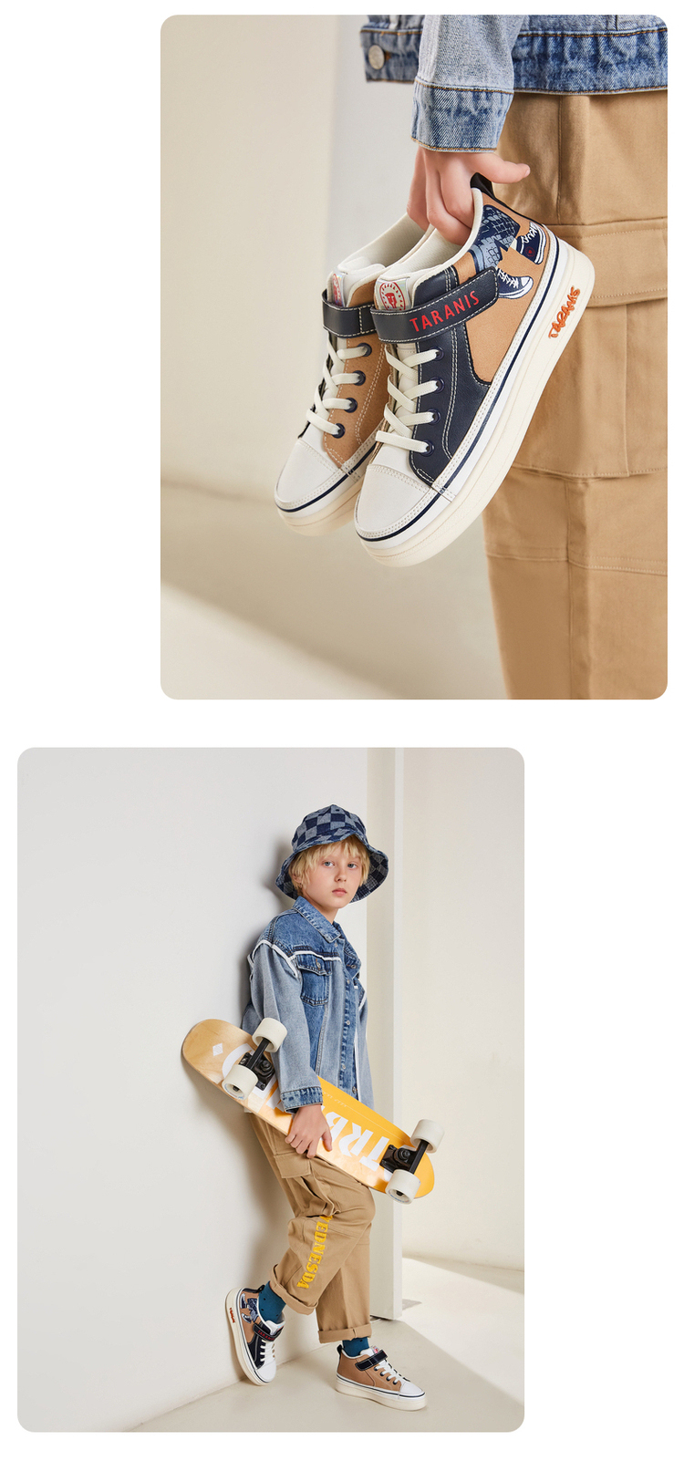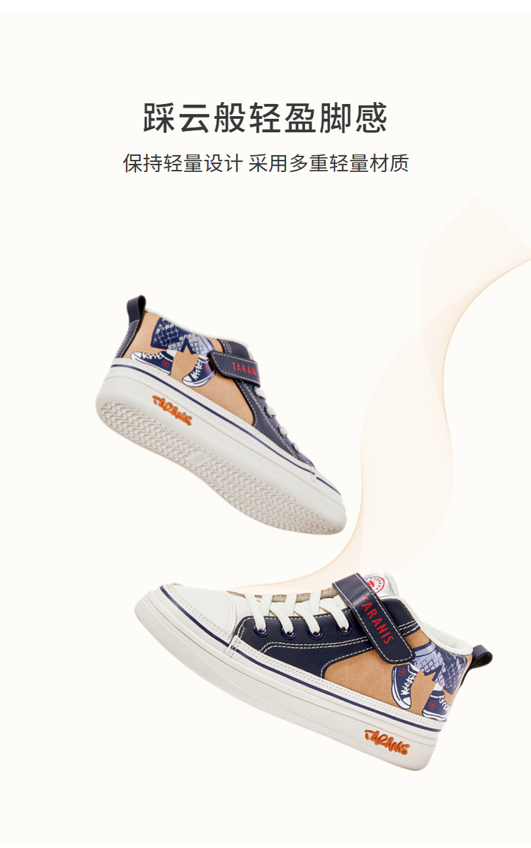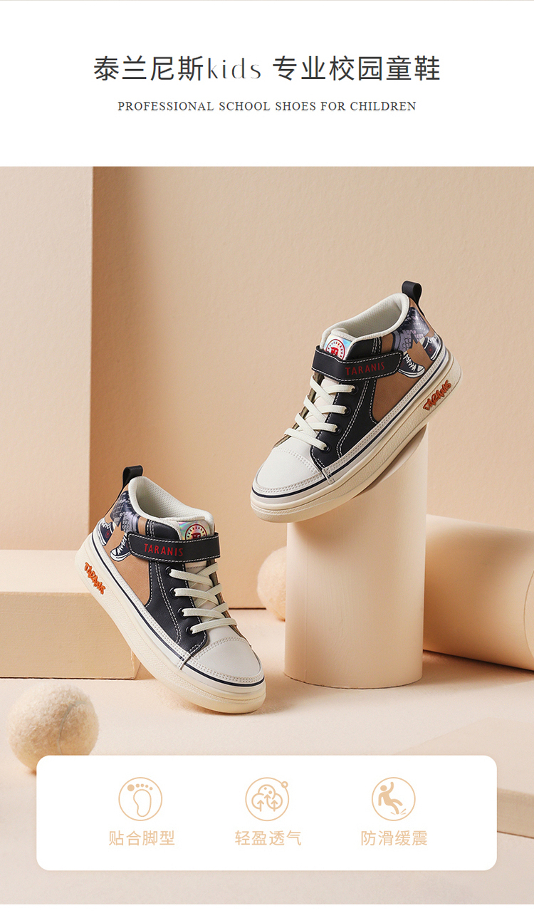 泰兰尼斯秋季中大童时尚复古中帮运动板鞋T02D2C2043