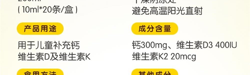 【保税】美国 迪巧 D-cal 小黄条液体钙PLUS 10ml*20条/盒(升级版)