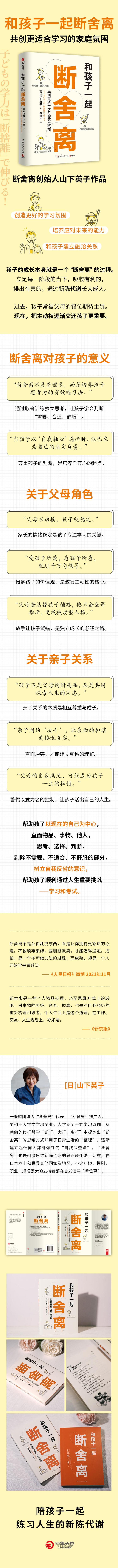 和孩子一起断舍离》是断舍离创始人山下英子所著的通俗心理读物。 断舍离并不是单纯的“整理术”,而是帮助孩子以现在的自己为中心,直面物品、事物、他人,思考、选择、判断,剔除不需要、不适合、不舒服的部分,树立自我反省的意识,帮助孩子顺利通过人生的第一关——学习和考试。在这个过程中,父母要尊重孩子的意见,理解彼此的差异和改变,从而构建和谐、幸福的亲子关系。 1.断舍离创始人山下英子作品,创造更适合学习的家庭氛围。 2.断舍离帮助孩子以自我为中心,直面身边的人、事、物,思考、选择、判断,树立自我精进意识,激发学习的自主性和自觉性,从环境到心态改变学习氛围。 3.为了应对未来的考试改革和人生,运用断舍离思维培养孩子的独立思考能力,赢得人生的长跑。 4.青春期不等于叛逆期,通过断舍离也能培养良好的亲子关系,融洽的关系由一家人共同创造。 5.小开本双封设计,便携阅读。