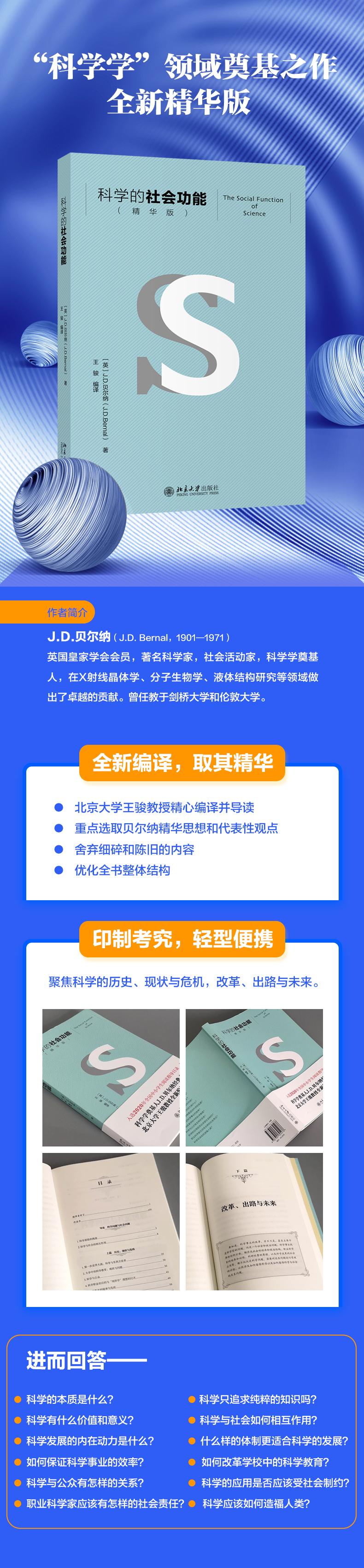 《科学的社会功能》是“科学学”领域的奠基之作,具有广泛的影响力,指引年轻学子理解科学的社会功能,进而更好地理解什么是科学,以及科学的价值与意义。在书中,贝尔纳详细分析了资本主义社会科学事业发展过程中的种种弊端。面对这些顽疾,贝尔纳指出,只有建立更加先进、合理的社会体制,才能使社会与科学良性互动,最终实现科学为人类福祉服务的理想。