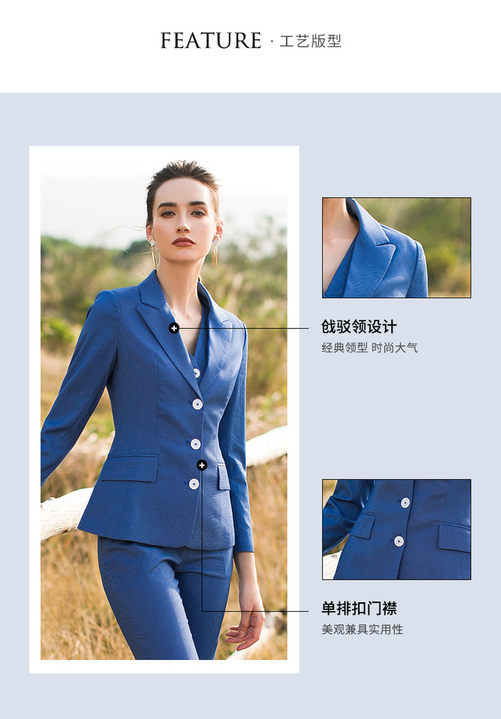 IWY/新品时尚V领修身显瘦蓝色套装女士西装白领西服工作服女CPM506