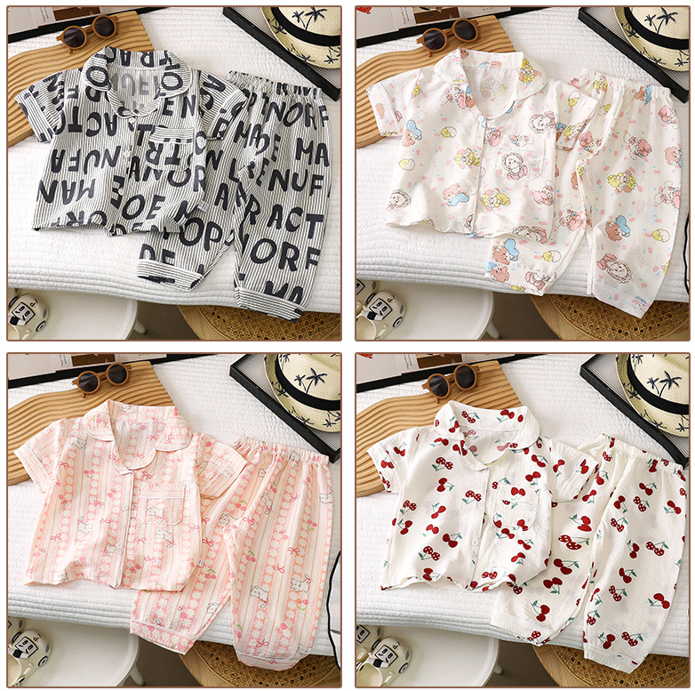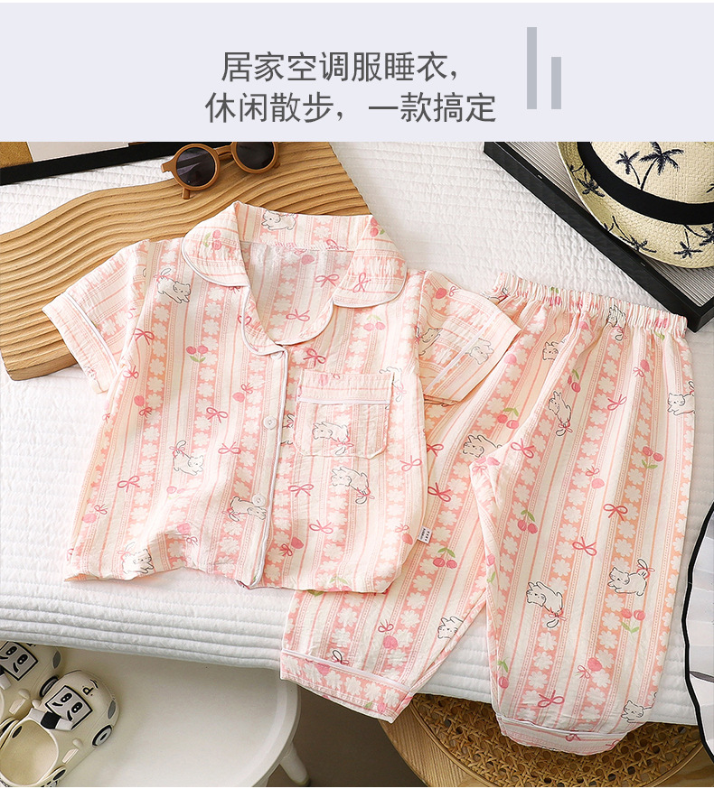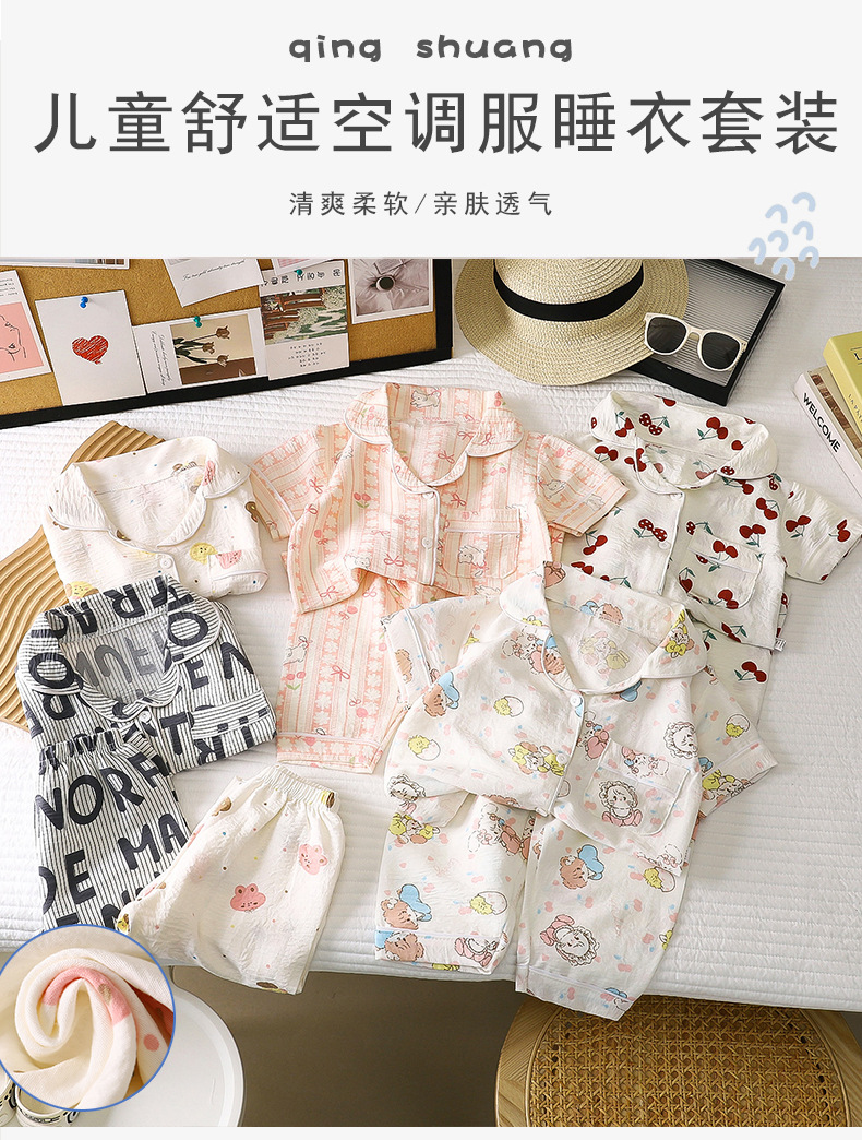 【儿童云朵棉睡衣套装】儿童睡衣套装夏季新款薄款短袖长裤宝宝空调服家居服