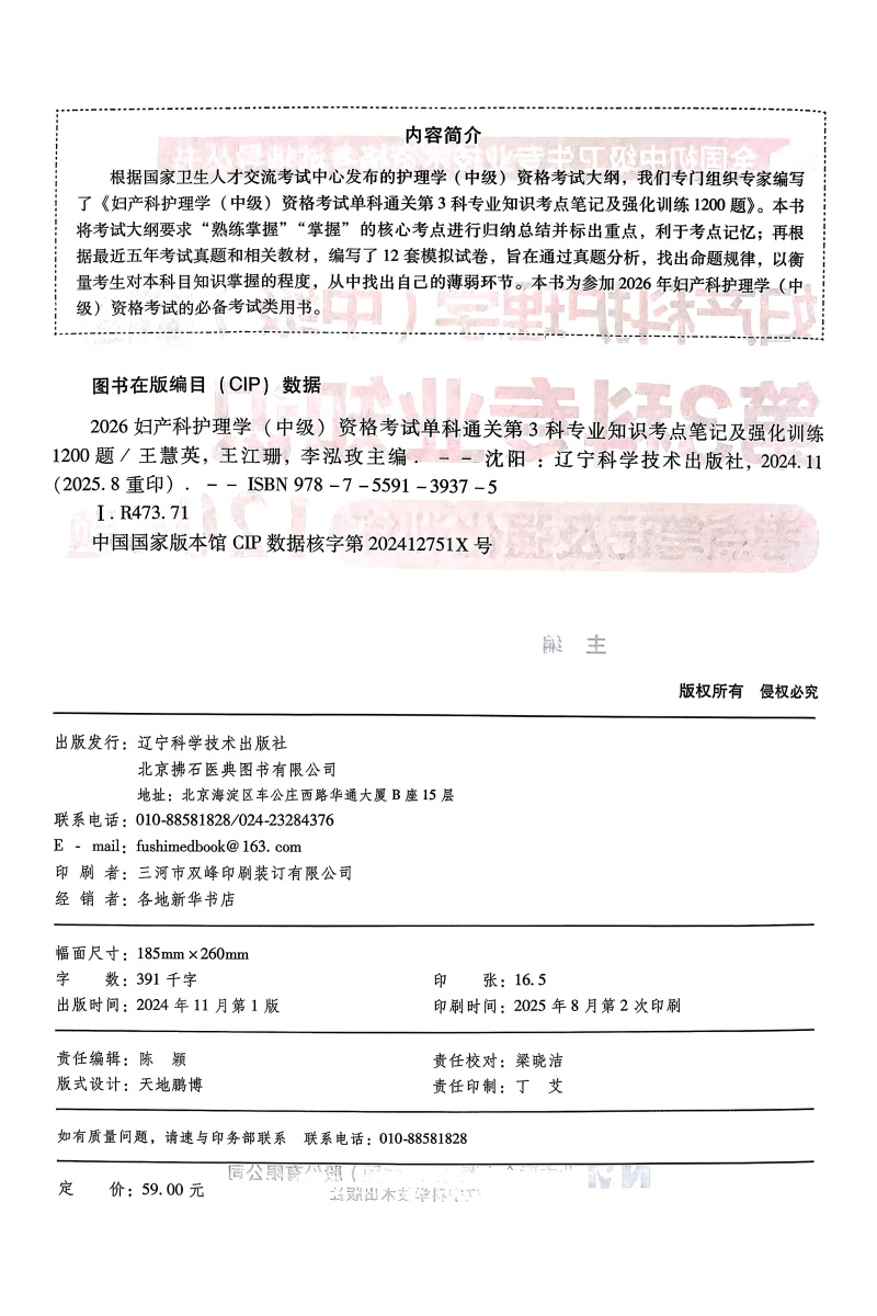 2026妇产科护理学(中级)资格考试第3科专业知识考点笔记及强化训练1200题 王慧英 王江珊 李泓玫9787559139375辽宁科学技术出版社