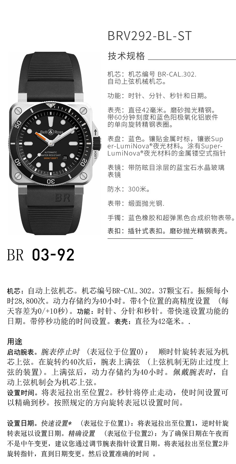 Bell & Ross 柏莱士 瑞士进口深潜水表全自动机械手表 BR0392-D-BL-ST/SRB