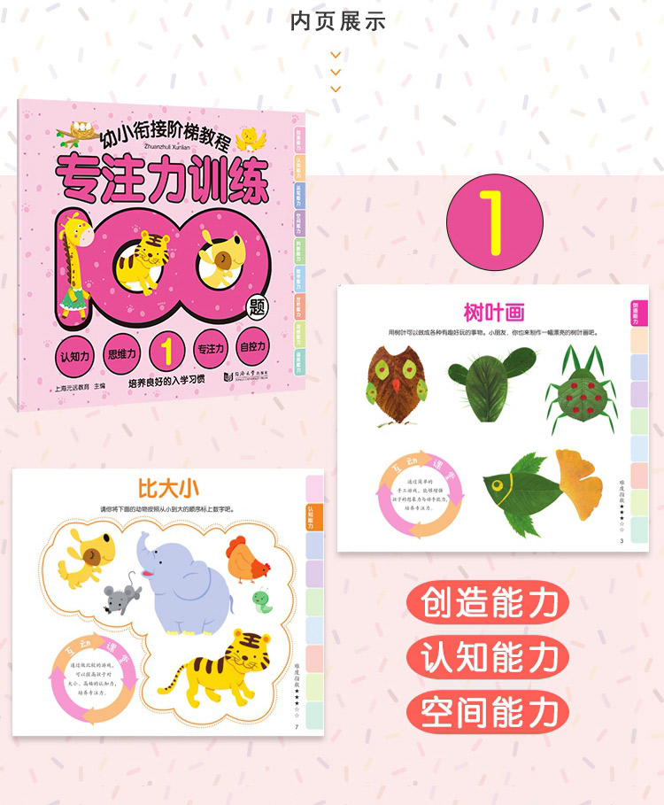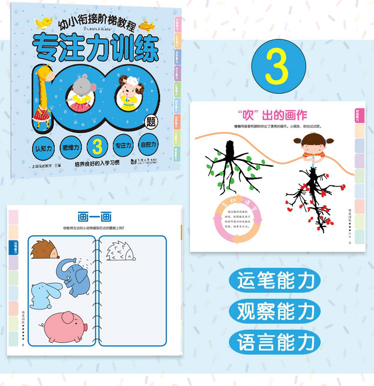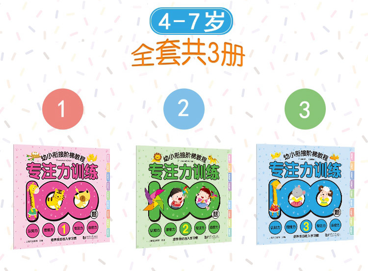 全3册儿童专注力训练游戏书100题 幼儿益智幼小衔接阶梯教程 幼儿启蒙认知书籍0-3-4-5-6岁宝宝观察创造力培养书籍分析判断力训练