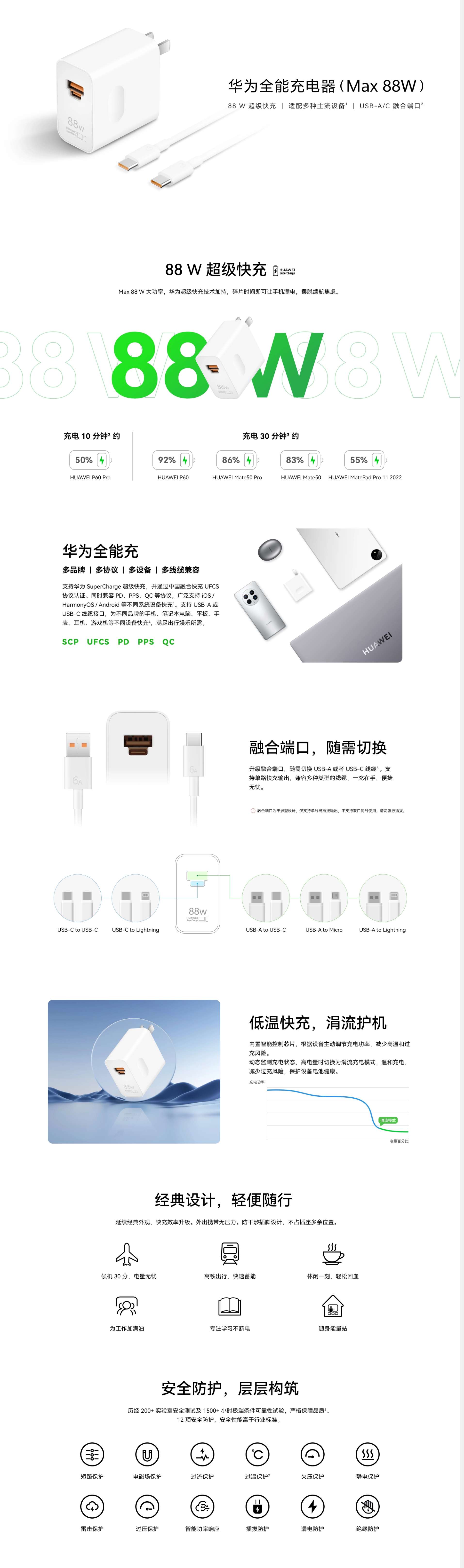 华为 全能充电器( Max 88W)HW-200440C00 白色