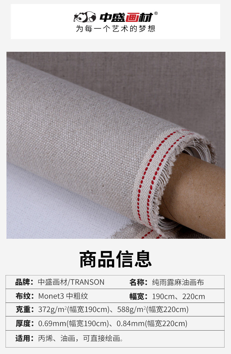 中盛画材 Monet3雨露麻亚麻中粗油画布 涂层幅宽190/220ccm