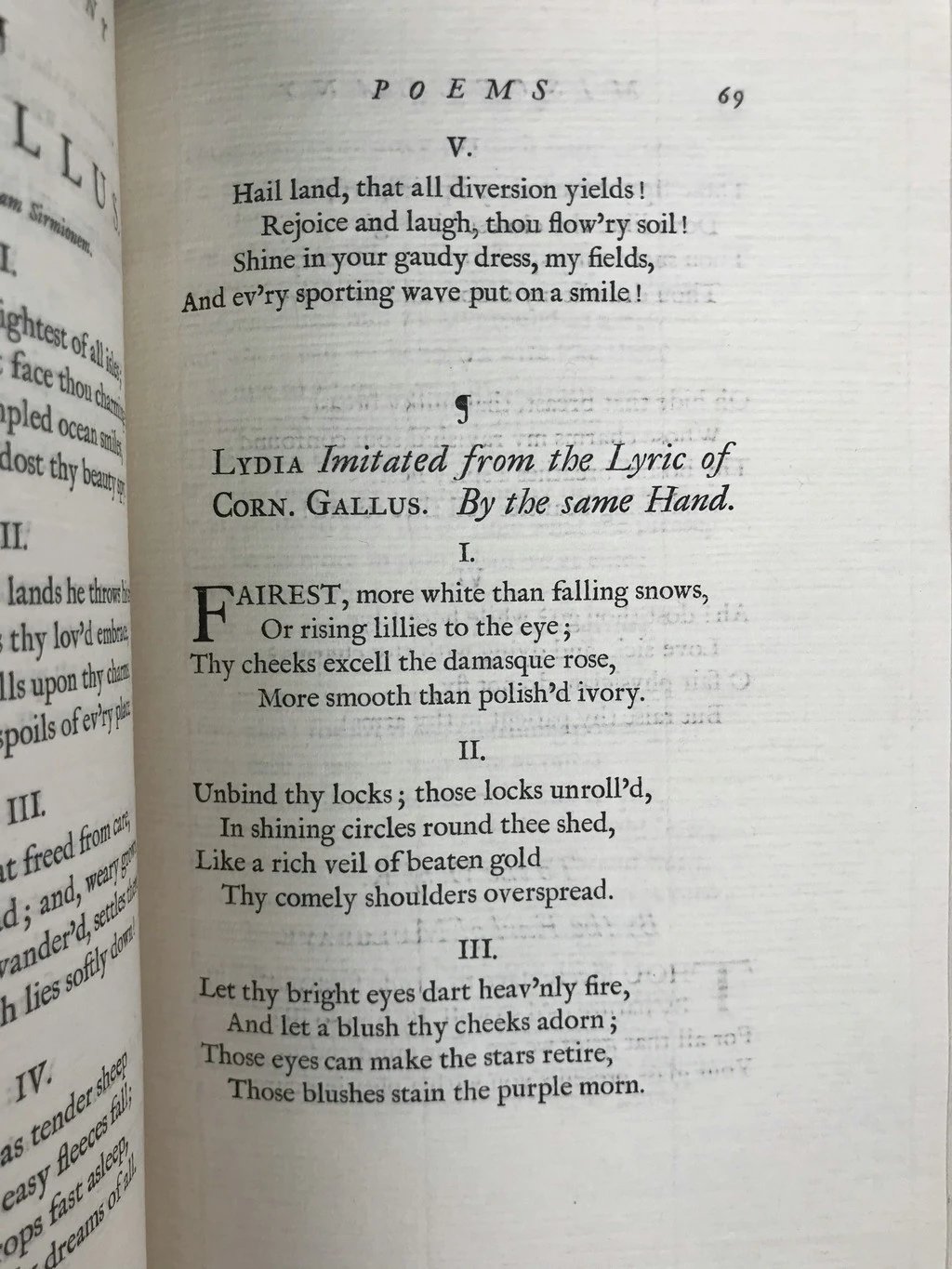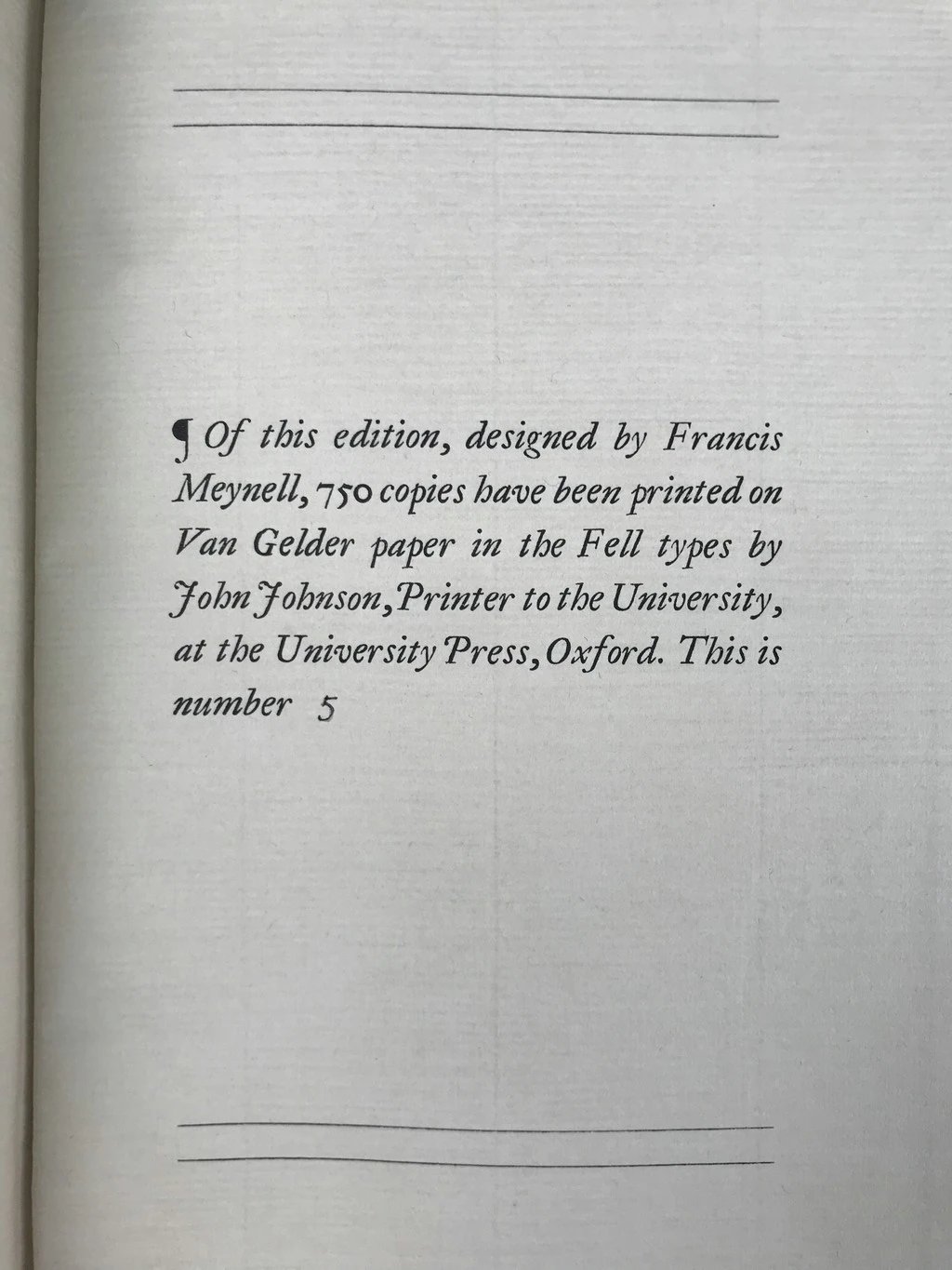 是书编者 Norman Ault(1880–1950),是英国重要的文学学者、诗歌研究者,专攻 17–18 世纪英国诗歌及英格兰抒情传统,其最重要的成就之一是挖掘、校订并重建了大量 17–18 世纪散佚或版本复杂的诗歌,为现代学界重新建立诗歌文本提供重要资料。该书的排版设计者 Francis Meynell(1891–1975),是 Nonesuch Press 的创始人之一,被视为 20 世纪最重要的私人出版社设计师之一。他主张 现代排版结合古典字体之美,这本书采用的Fell types(牛津古典铅字) 排字,使文本呈现端庄、均衡的英国古典气质。文内的纸张采用的是Van Gelder Paper(荷兰范·赫尔德纸),它们来自是荷兰历史悠久的造纸家族,起源于 17 世纪,其纸张被欧洲顶级出版社、私人印刷商和 精品私家印刷长期采用。